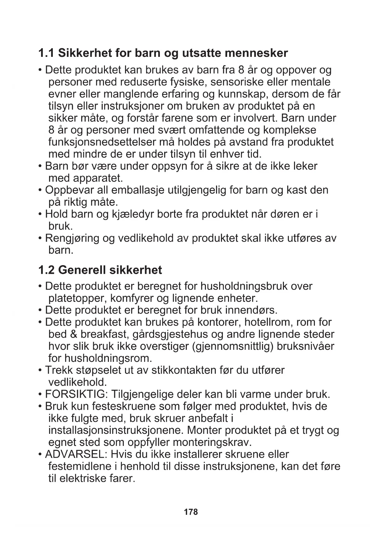 - Dette produktet kan brukes av barn fra 8 år og oppover og personer med reduserte fysiske, sensoriske eller mentale evner eller manglende erfaring og kunnskap, dersom de får tilsyn eller instruksjoner om bruken av produktet på en sikker måte, og forstår farene som er involvert. Barn under 8 år og personer med svært omfattende og komplekse funksjonsnedsettelser må holdes på avstand fra produktet med mindre de er under tilsyn til enhver tid.