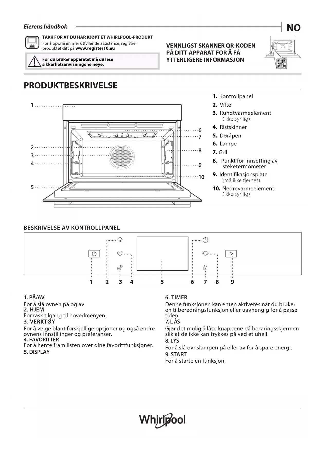 Finn enhetens veiledning gratis WCW9O7PHTSB WHIRLPOOL i PDF-format.