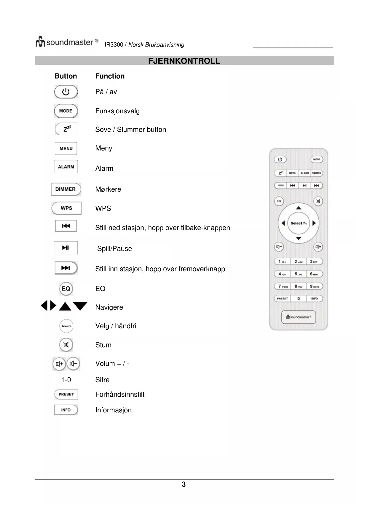 BRUKSANVISNING IR3300 Soundmaster