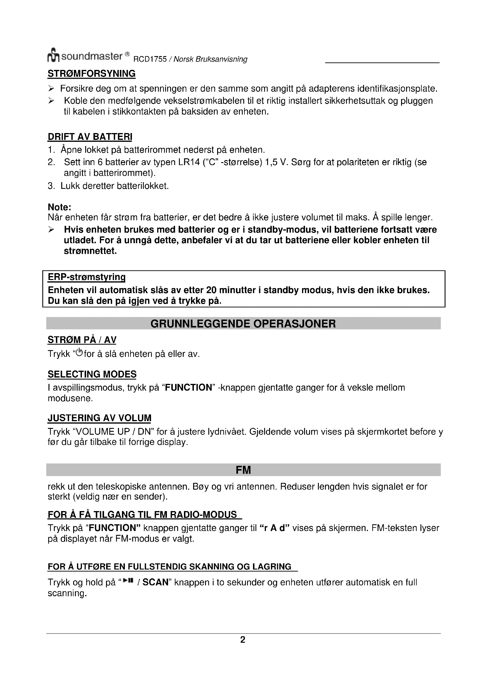 RCD1755 - Radio Soundmaster - Gratis bruksanvisning og manual