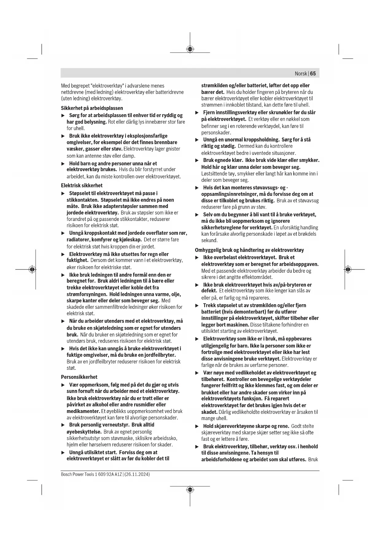 Målt ved20−25°Cmed batteriProCORE18V 8.0Ah. B) avhengig av benyttet batteri C) begrenset ytelse ved temperaturer <0°C Verdiene kan variere avhengig av produktet, bruksområdet og miljøforholdene. Du finner mer informasjon på www.bosch-professional.com/wac. Støy-/vibrasjonsinformasjon Støyemisjon målt i henhold til EN62841‑2‑11. Vanlig A-støynivå for elektroverktøyet: lydtrykknivå 89dB(A); lydeffektnivå 97dB(A). Usikkerhet K=5dB. Bruk hørselvern! Vibrasjon totalt a