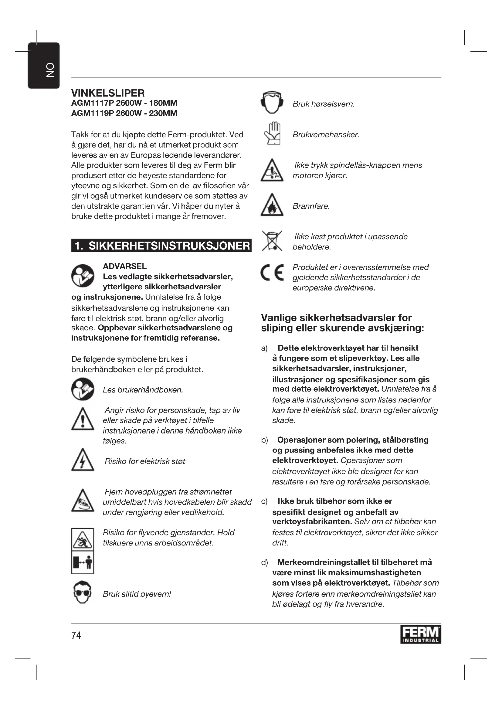 BRUKSANVISNING AGM1119P Ferm