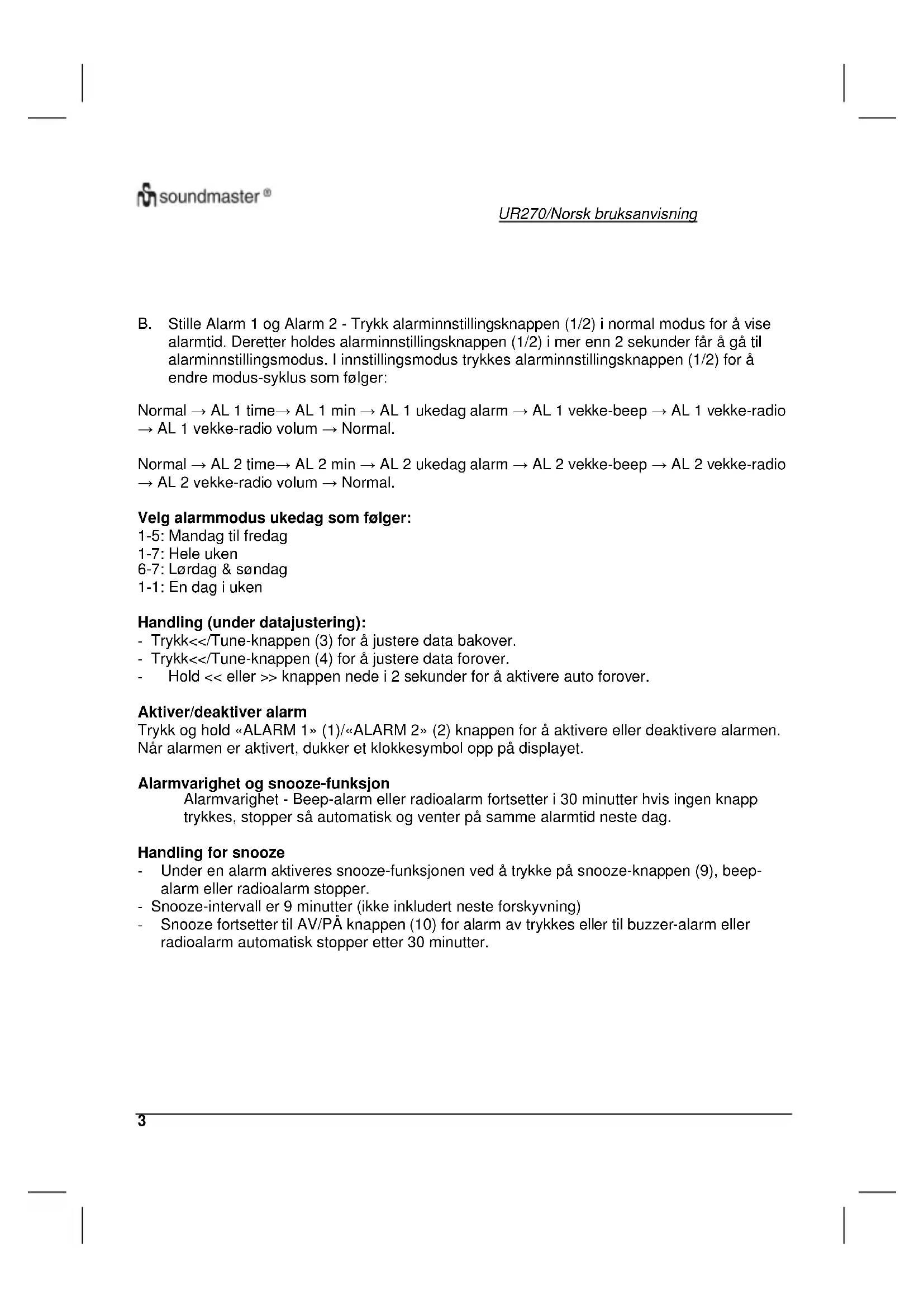 Finn enhetens veiledning gratis UR270RO Soundmaster i PDF-format.