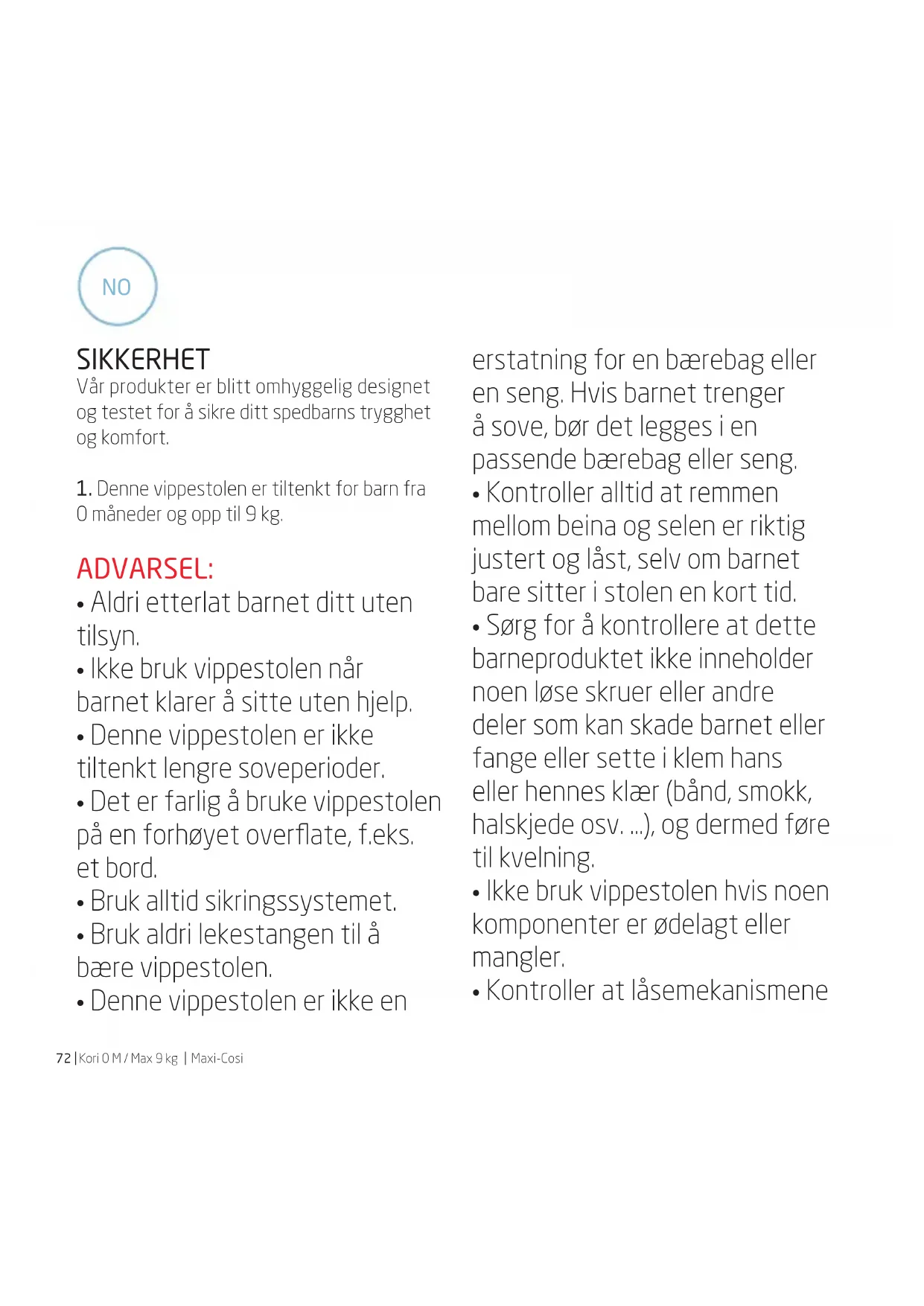 Last ned instruksjonene for din Gyngestol i PDF-format gratis! Finn veiledningen din Kori - MAXI-COSI og ta den elektroniske enheten tilbake i hendene. På denne siden er alle dokumenter som er nødvendige for bruken av enheten din publisert. Kori av merket MAXI-COSI.