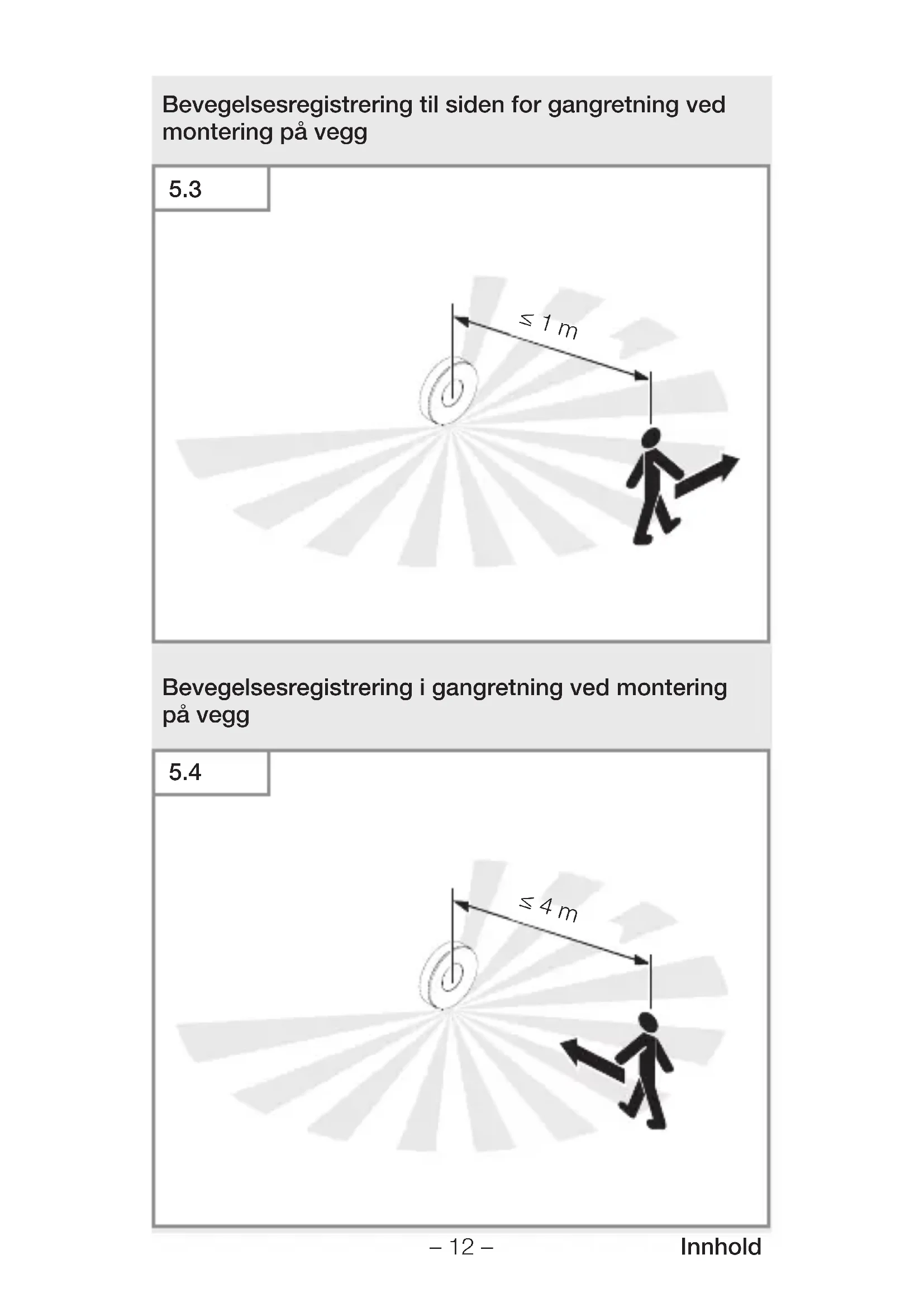 ≤8m 2,8m– 12 – Innhold Bevegelsesregistrering til siden for gangretning ved montering på vegg