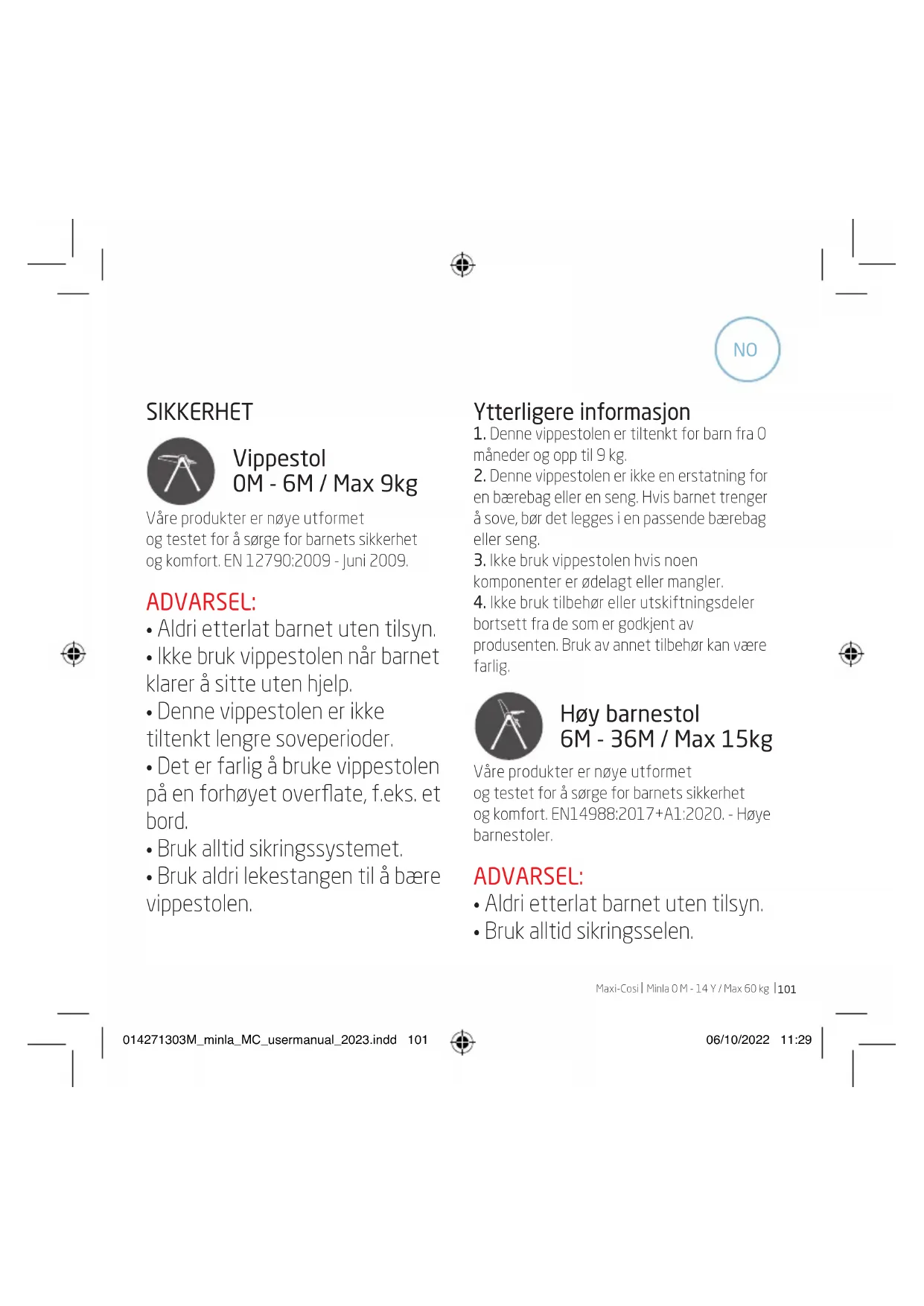 bortsett fra de som er godkjent av produsenten. Bruk av annet tilbehør kan være farlig. Høy barnestol 6M - 36M / Max 15kg Våre produkter er nøye utformet og testet for å sørge for barnets sikkerhet og komfort. EN14988:2017+A1:2020. - Høye barnestoler. ADVARSEL: