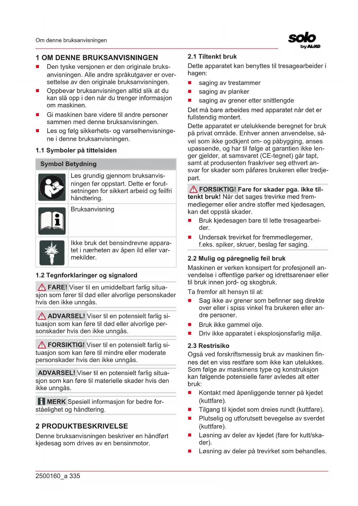 Last ned instruksjonene for din Sag i PDF-format gratis! Finn veiledningen din Solo 6646 - AL-KO og ta den elektroniske enheten tilbake i hendene. På denne siden er alle dokumenter som er nødvendige for bruken av enheten din publisert. Solo 6646 av merket AL-KO.