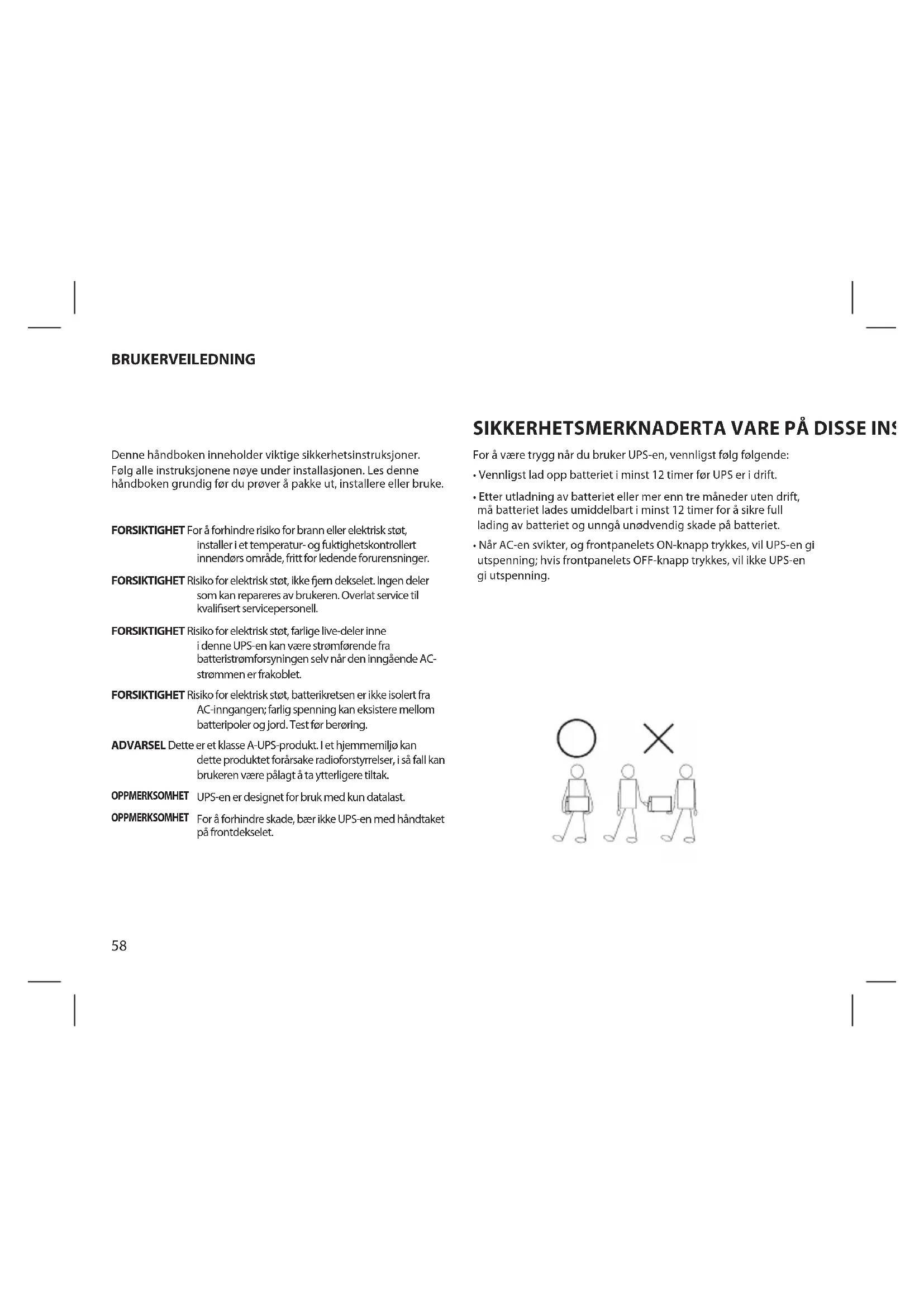 For å være trygg når du bruker UPS-en, vennligst følg følgende: