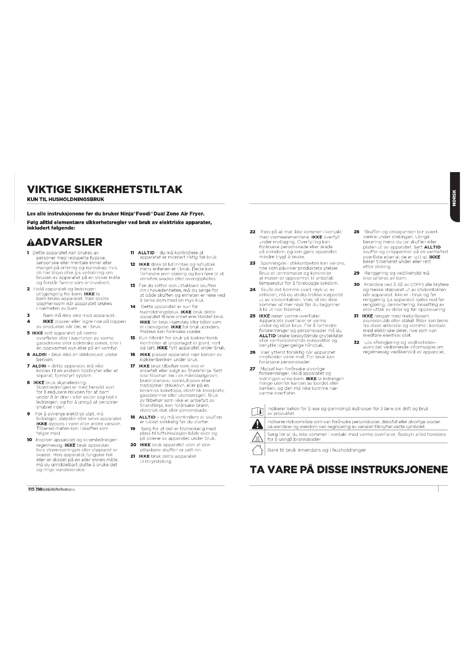 17 IKKE brik tuibehor som iike er anbefa t ell sor gt av SharkNinja. Sett iike tuibehor inn ic mikrobelcgon, bredr steroen, varmlutsoyn er alter tradisjornell stekeov, ell pa en keramisk koketopp, ekkrisk kokeplate, gassbrenner ell utendogrill. Bruk av tuibehor som iike er anbefa t av SharkNinja, kan erfarsebran, ekkrisk stat eter persnoskade.