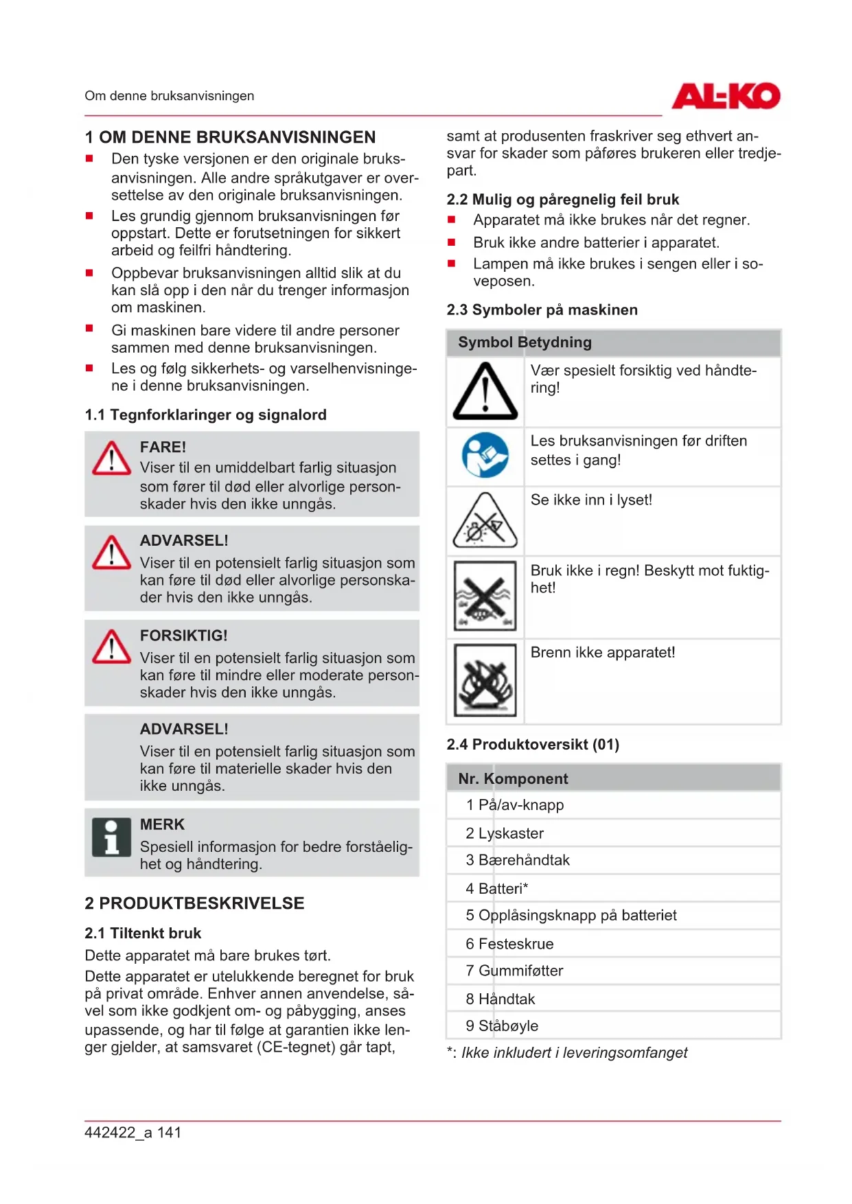 WL 2020 - Håndlykt AL-KO - Gratis bruksanvisning og manual