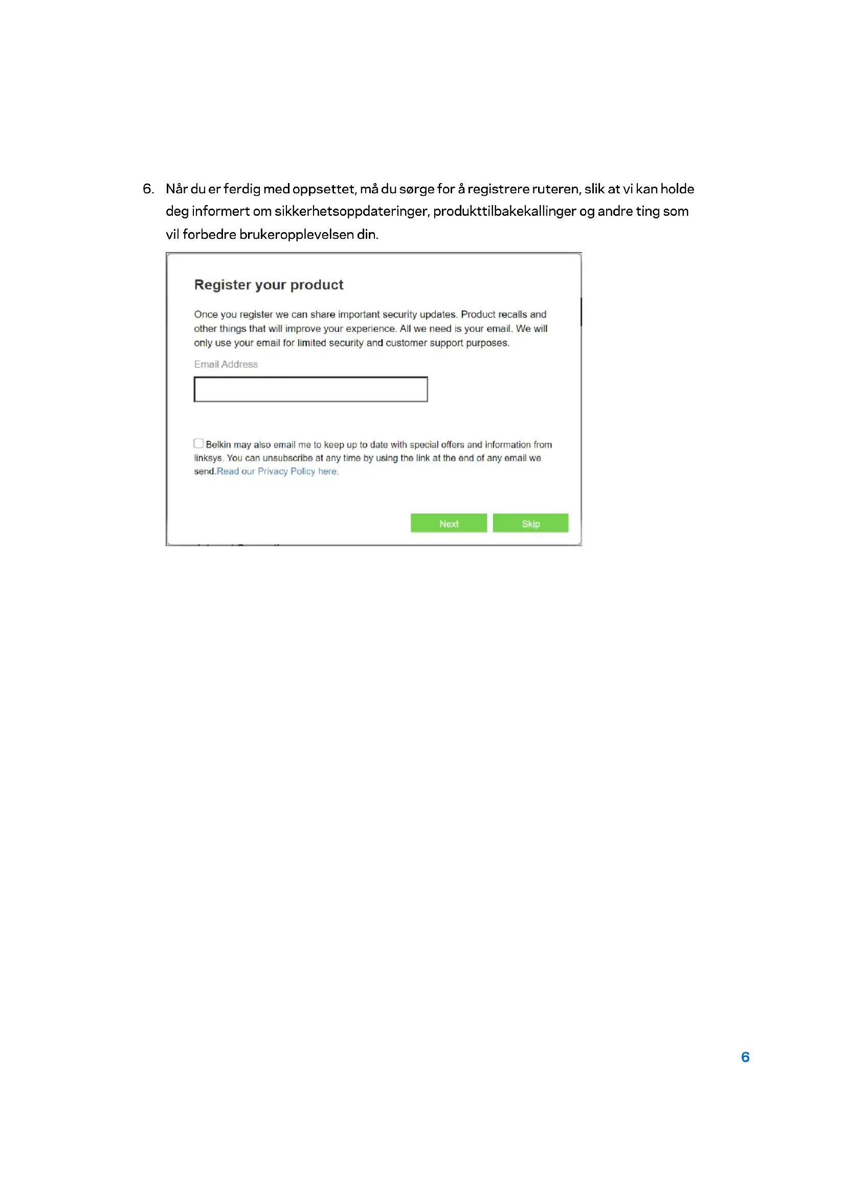 6. Når du er ferdig med oppsettet, må du sørge for å registrere ruteren, slik at vi kan holde
