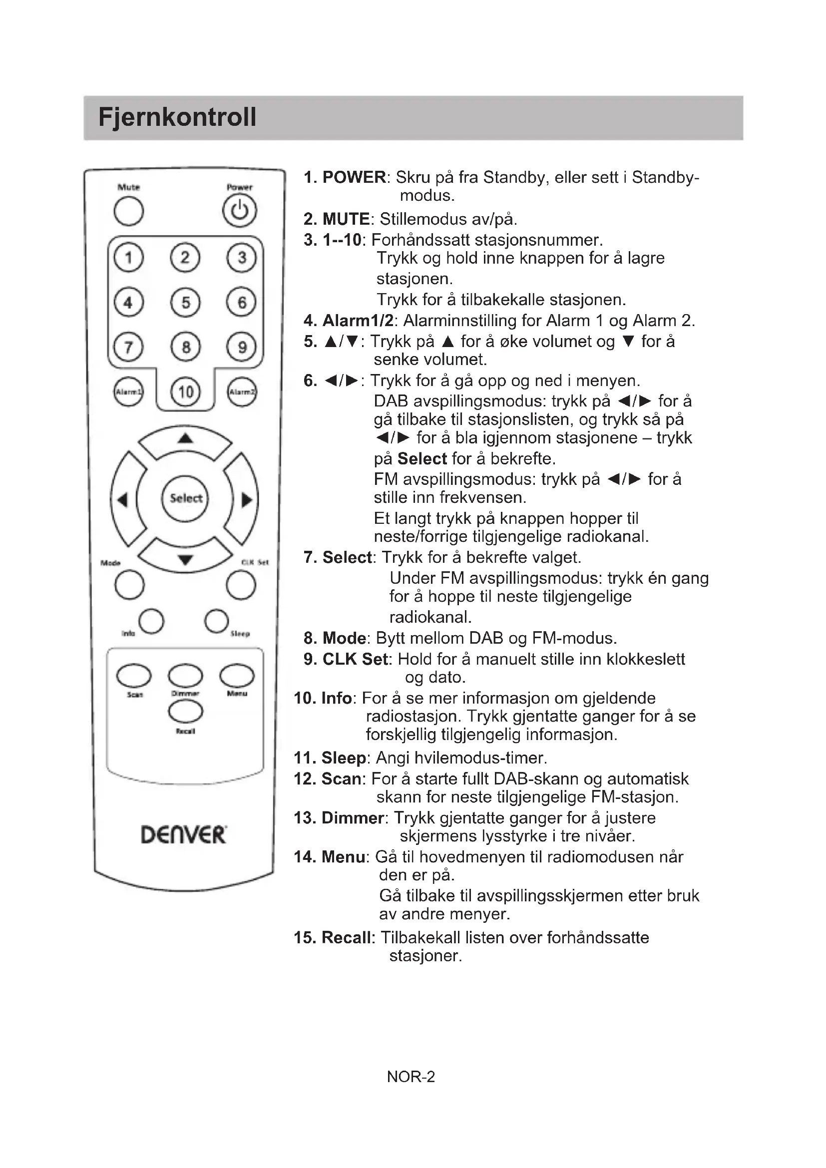 BRUKSANVISNING DAB20 DENVER