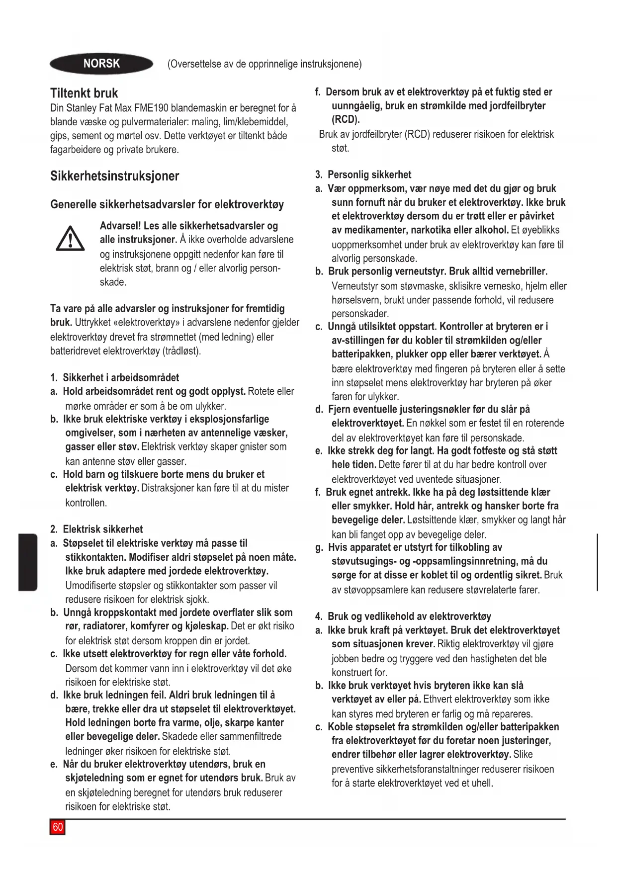 Last ned instruksjonene for din Sementblander i PDF-format gratis! Finn veiledningen din FME190 - STANLEY og ta den elektroniske enheten tilbake i hendene. På denne siden er alle dokumenter som er nødvendige for bruken av enheten din publisert. FME190 av merket STANLEY.