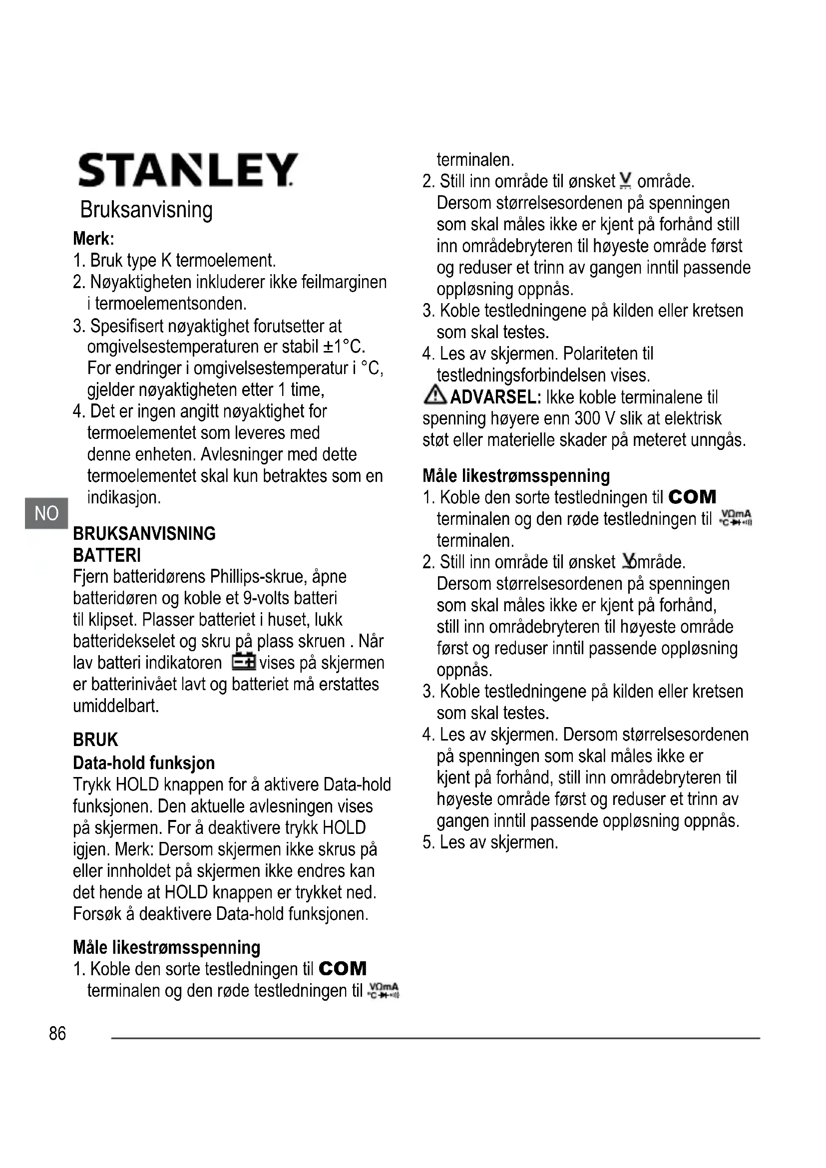 STHT077364 - Multimeter STANLEY - Gratis bruksanvisning og manual