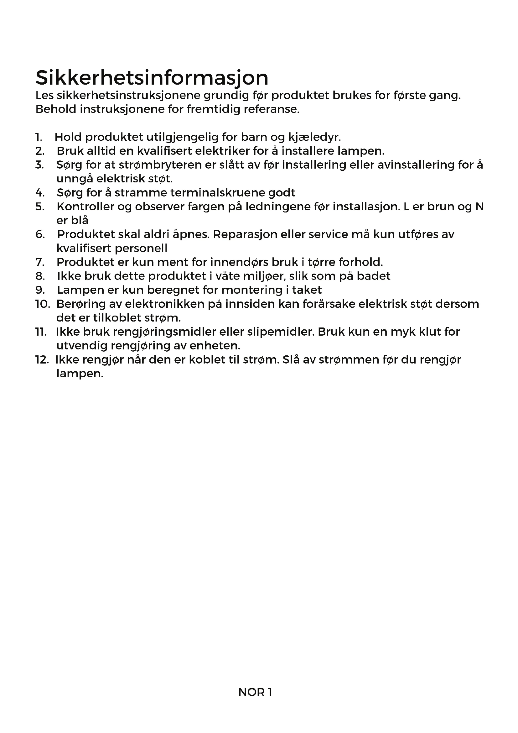 1. Hold produktet utilgjengelig for barn og kjæledyr.