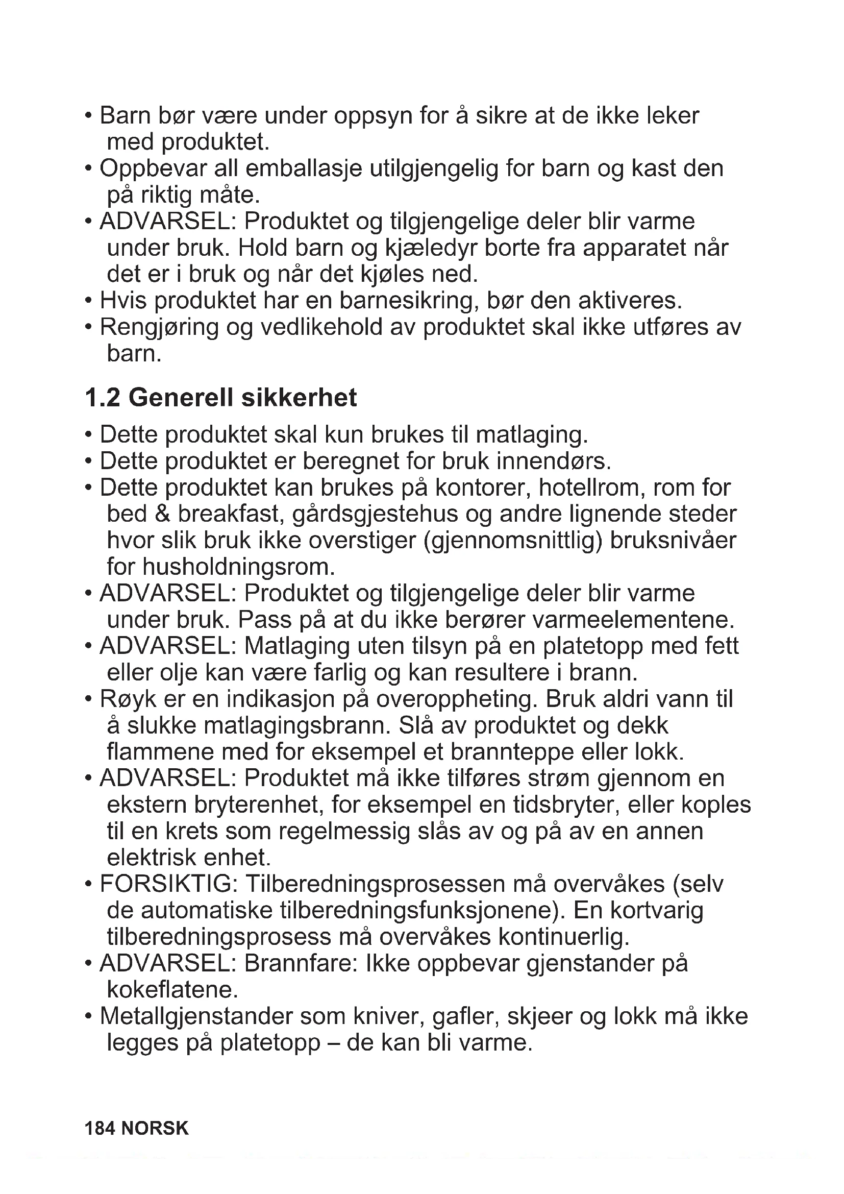 - ADVARSEL: Produktet og tilgjengelige deler blir varme under bruk. Hold barn og kjæledyr borte fra apparatet når det er i bruk og når det kjøles ned.