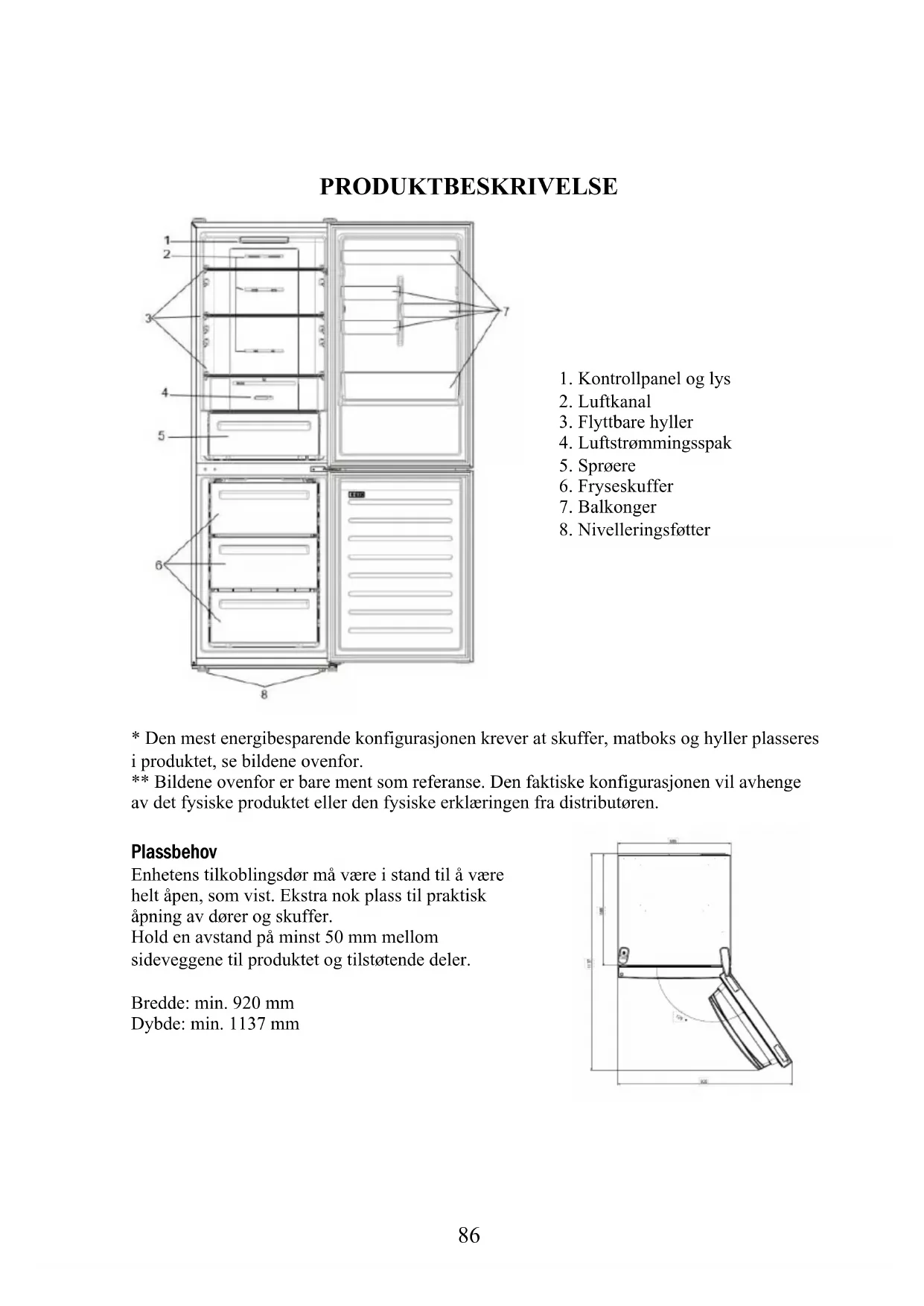 | • Mat i kontakt med bakveggen. | • Hold maten unna bakveggen pa kjoleskapet. | |