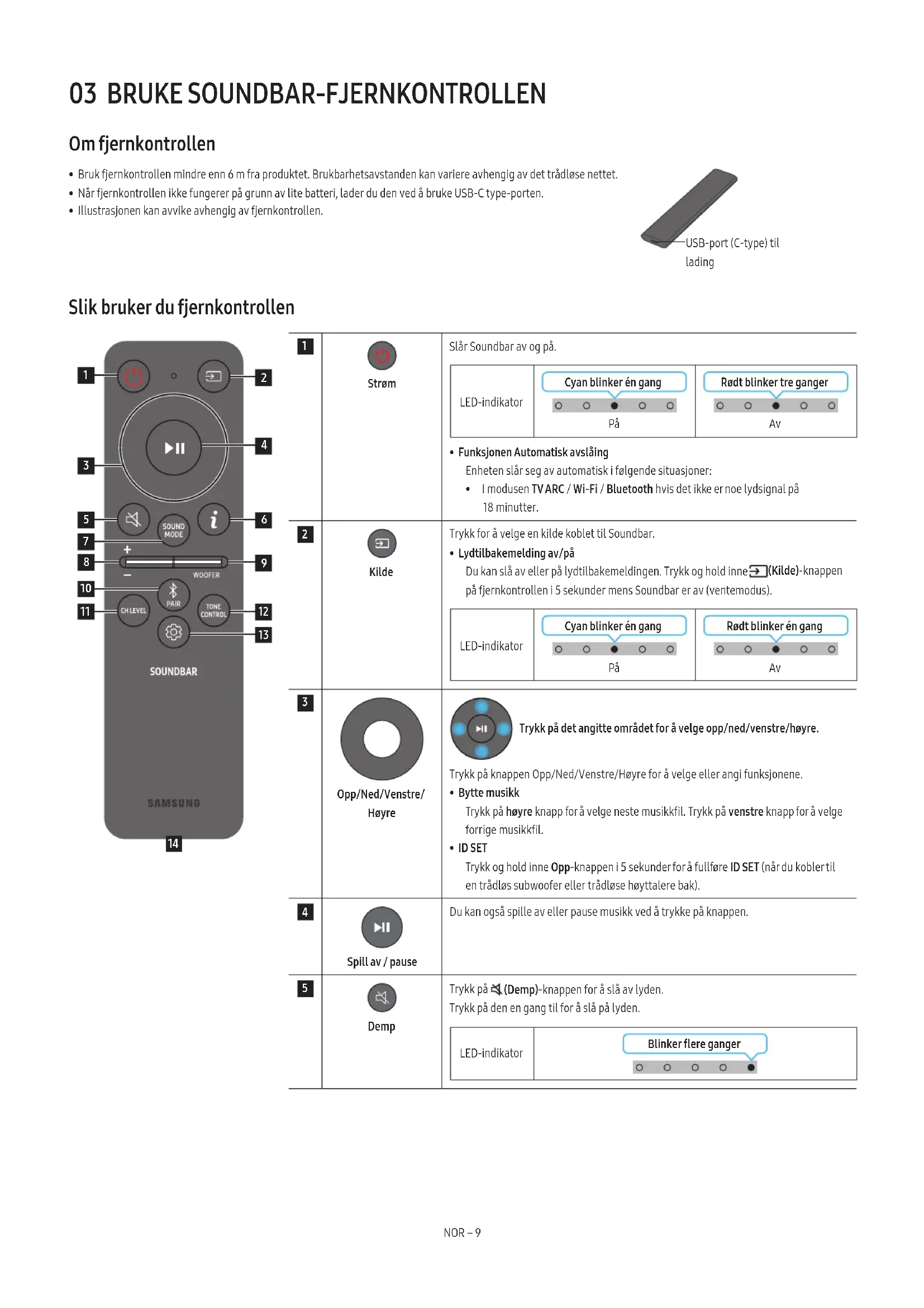 - Illustrasjonen kan avvike avhengig av fjernkontrollen. USB-port (C-type) til lading Slik bruker du fjernkontrollen