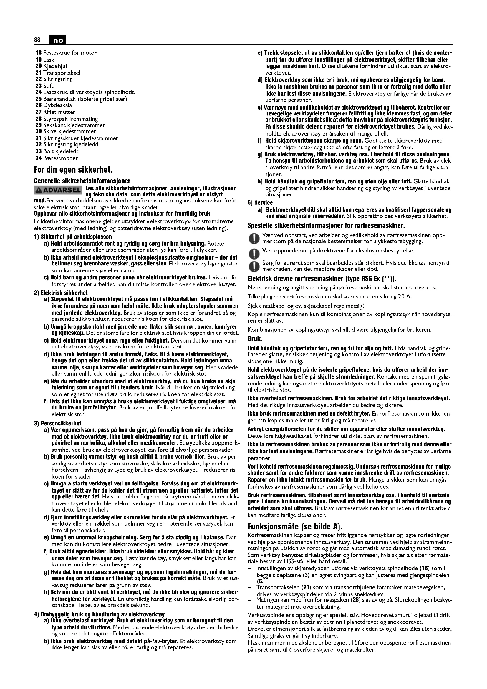 Rørfresemaskinen er bestemt for kapping og fresing av frittligende rørstykker og lagte ørledninger i stål eller stopejern somt for afvasting av rørender for de svëses pa byggeplasser, fabrikkhalter og utendørs. Rørfresemaskinen er bestemt for spezialfirmær til betjening av specialister foriske kontinuérilhg herdagsbruk.