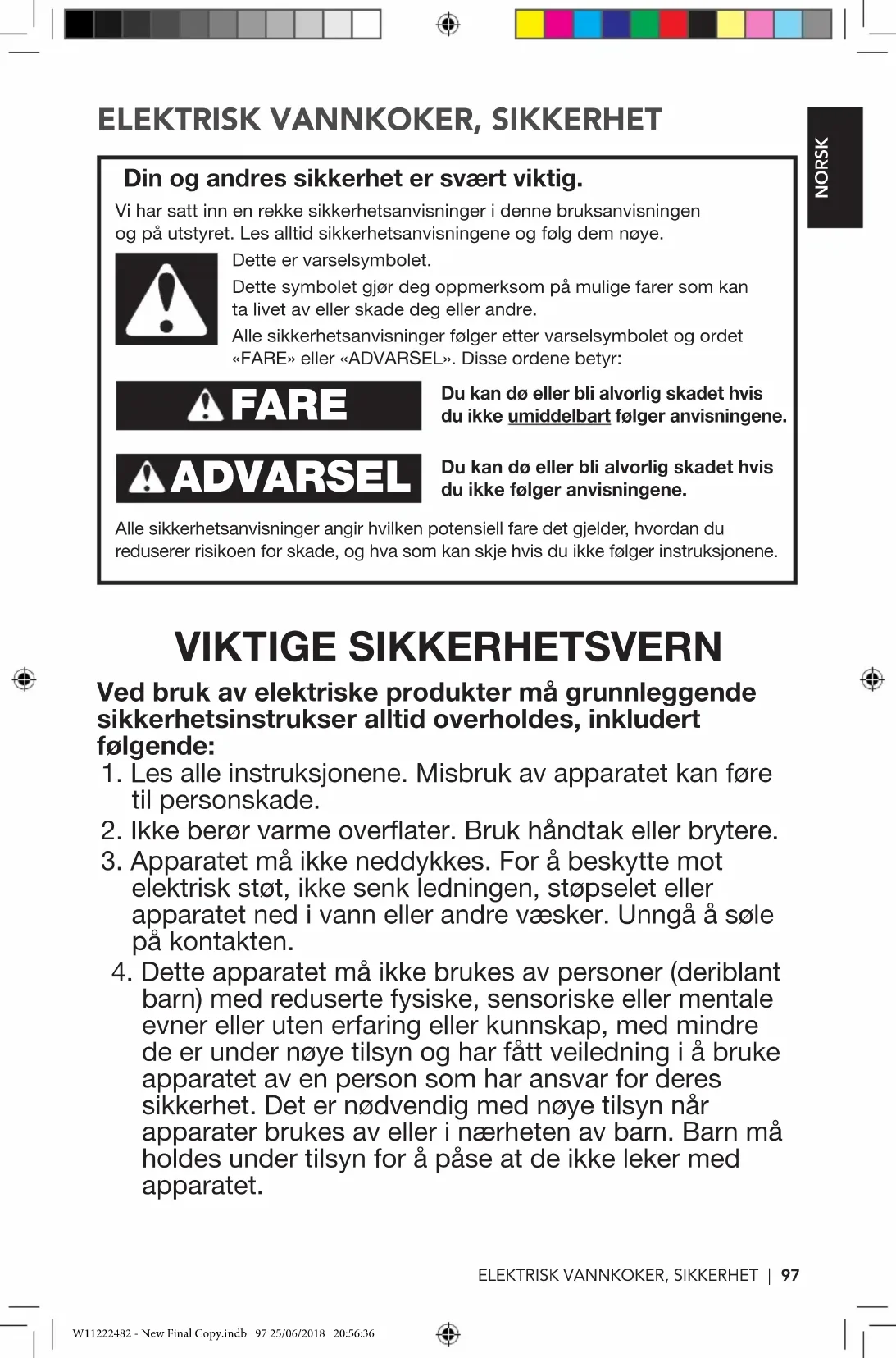 ELEKTRISK VANNKOKER SIKKERHET97