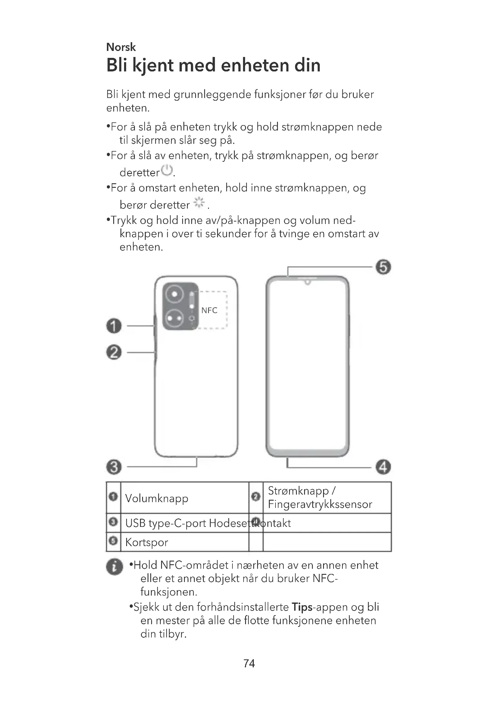 - Sjekk ut den forhåndsinstallerte Tips-appen og bli en mester på alle de otte funksjonene enheten din tilbyr. 74Komme i gang