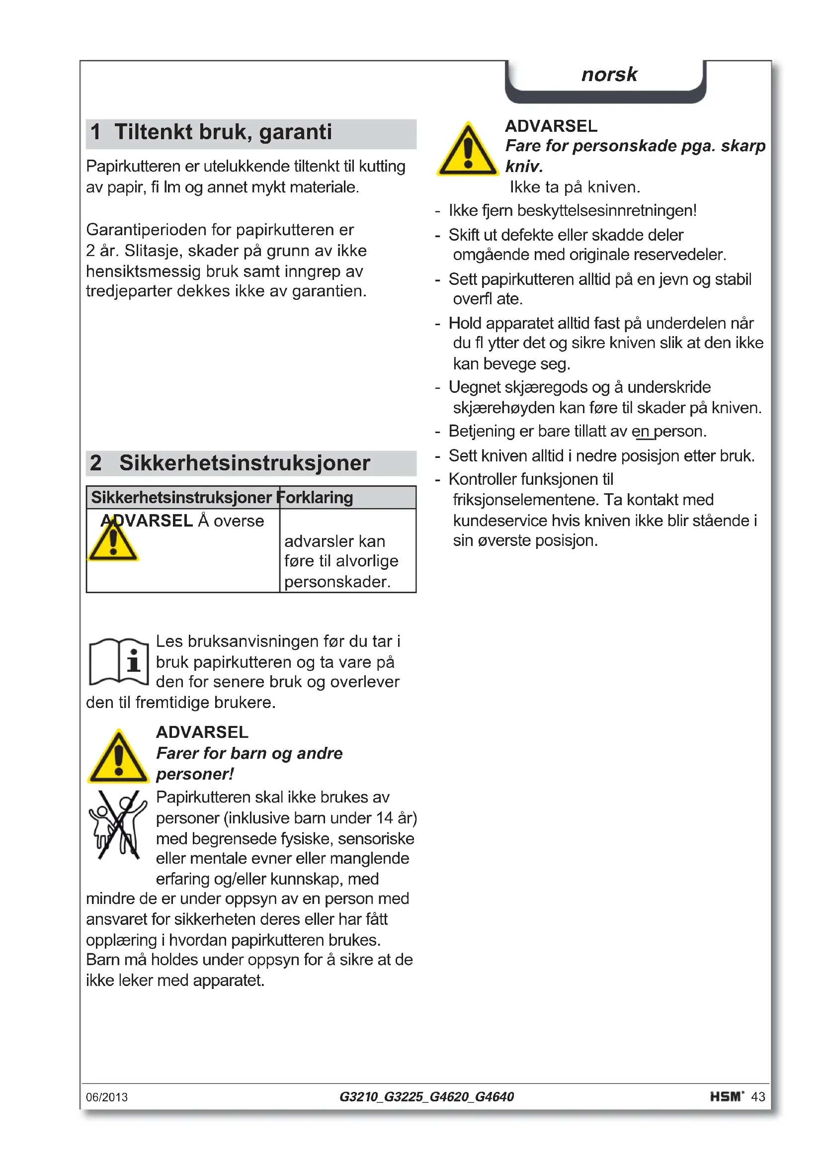 - Bruk en klut for å påføre lett olje eller fl ytende vaseline på kniven til stell. 5 Tekniske data Type G3210 G3225 G4620 G4640 Skjæreeffekt (ark), 80 g/m