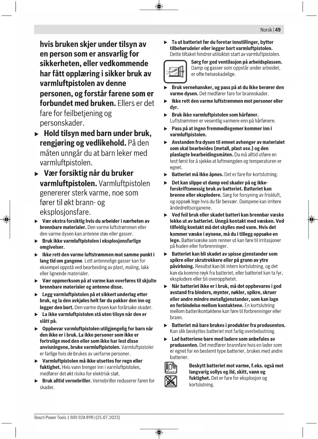 Last ned instruksjonene for din Varmluftpistol i PDF-format gratis! Finn veiledningen din GHG 18B50 Professional - BOSCH og ta den elektroniske enheten tilbake i hendene. På denne siden er alle dokumenter som er nødvendige for bruken av enheten din publisert. GHG 18B50 Professional av merket BOSCH.