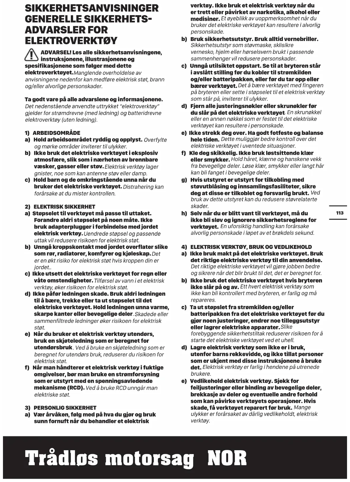 4) ELEKTRISK VERKTØY, BRUK OG VEDLIKEHOLD