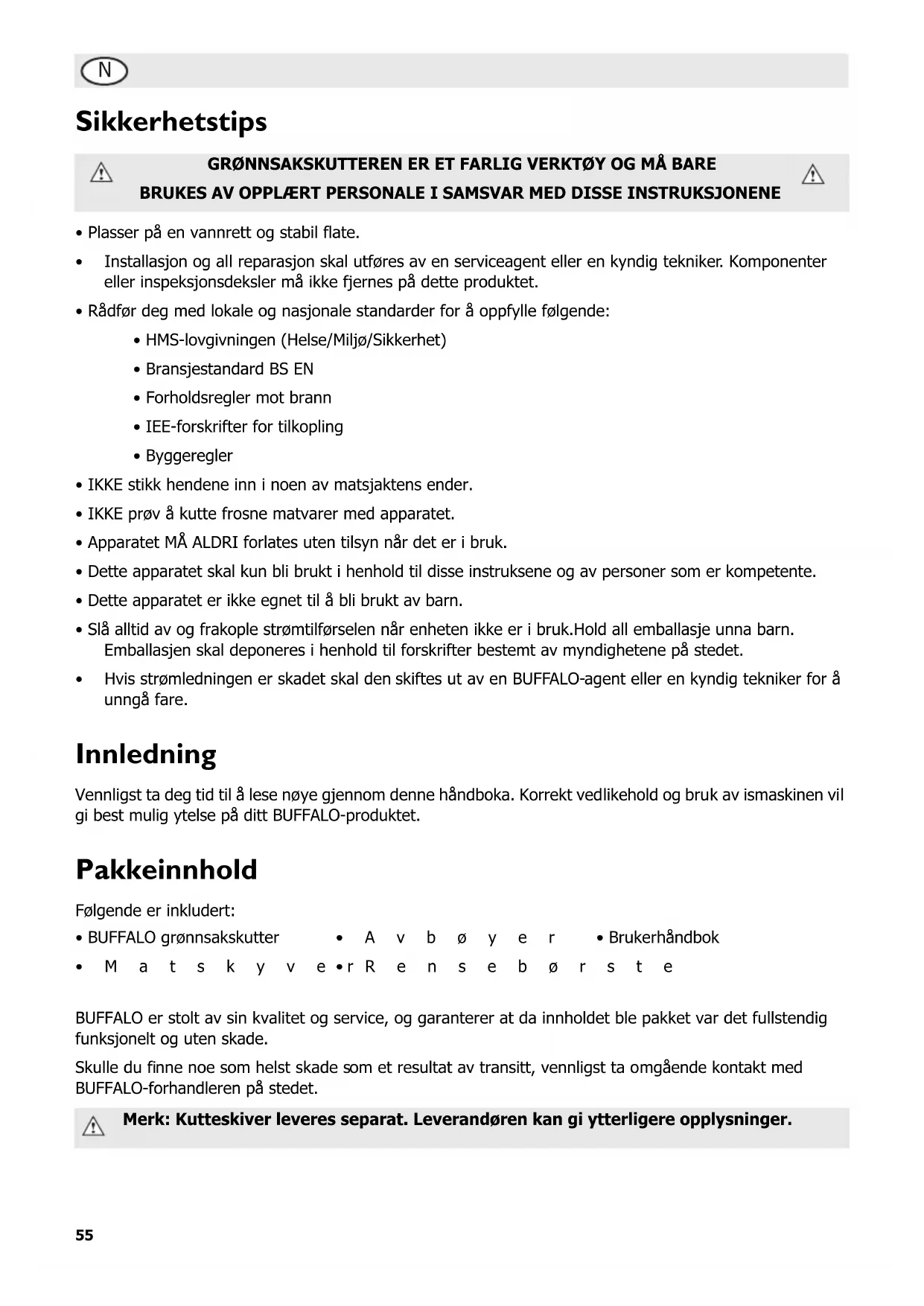 Vennligst ta deg tid til Å lese nøye gjennom dette händboka. Korrekt vedlikehold og bruk av ismaskinen vil gi best mulig ytelse på ditt BUFFALO-produktet.