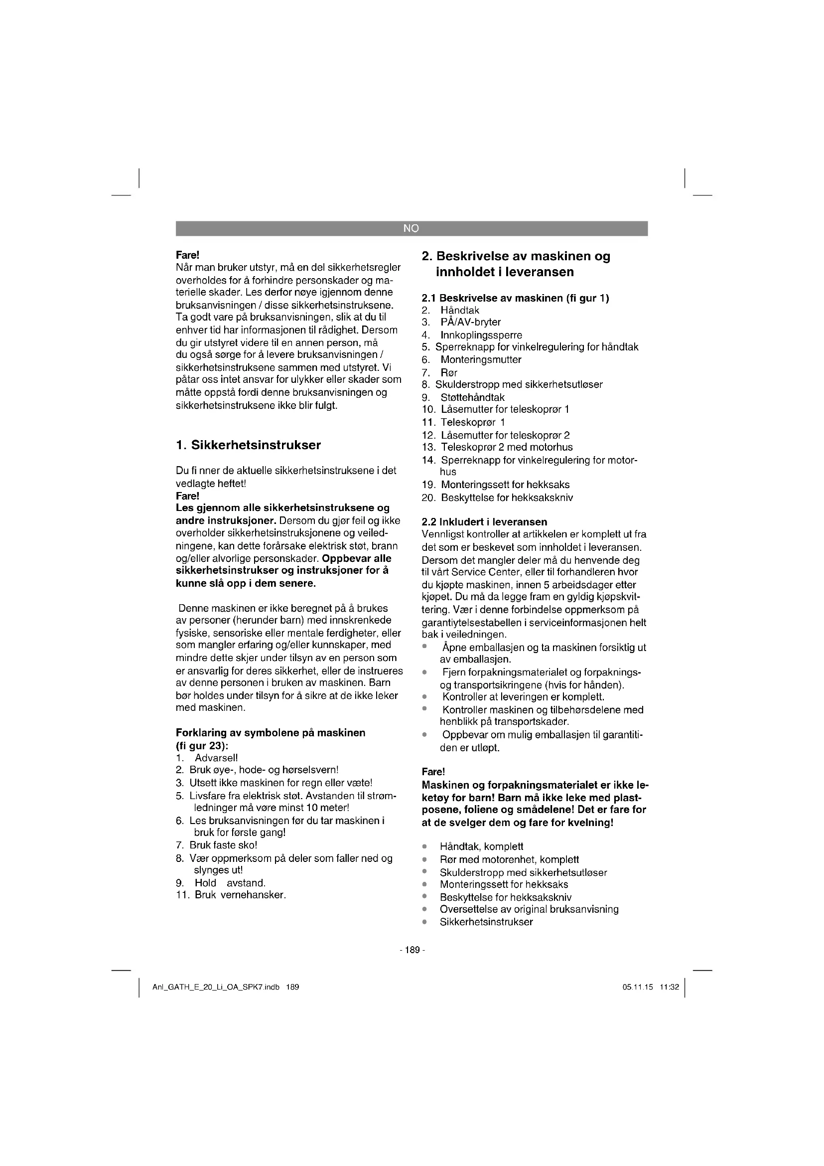 GATH-E 20 Li OA - Hekksakser Gardol - Gratis bruksanvisning og manual