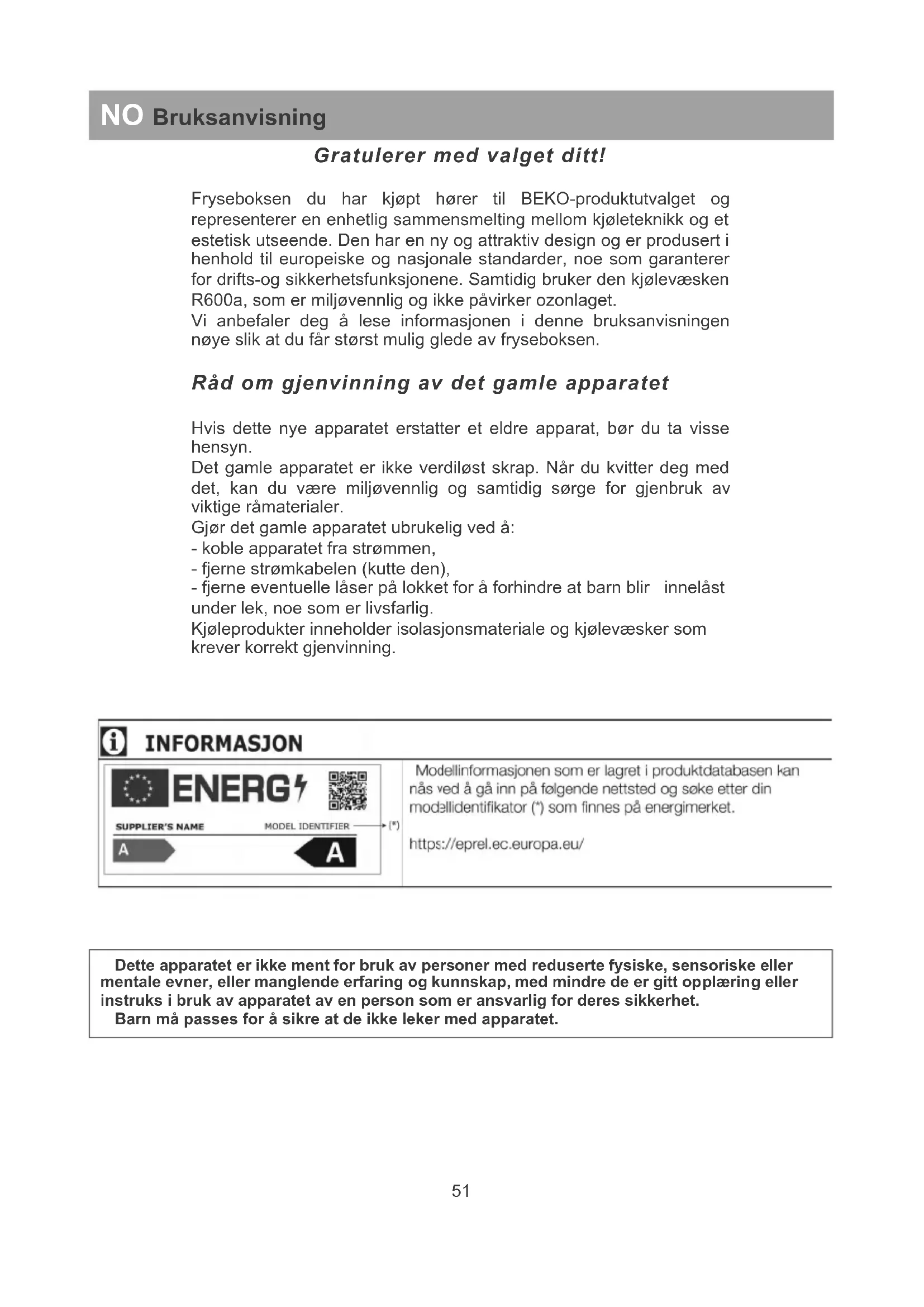 HSM210530 - Fryser BEKO - Gratis bruksanvisning og manual
