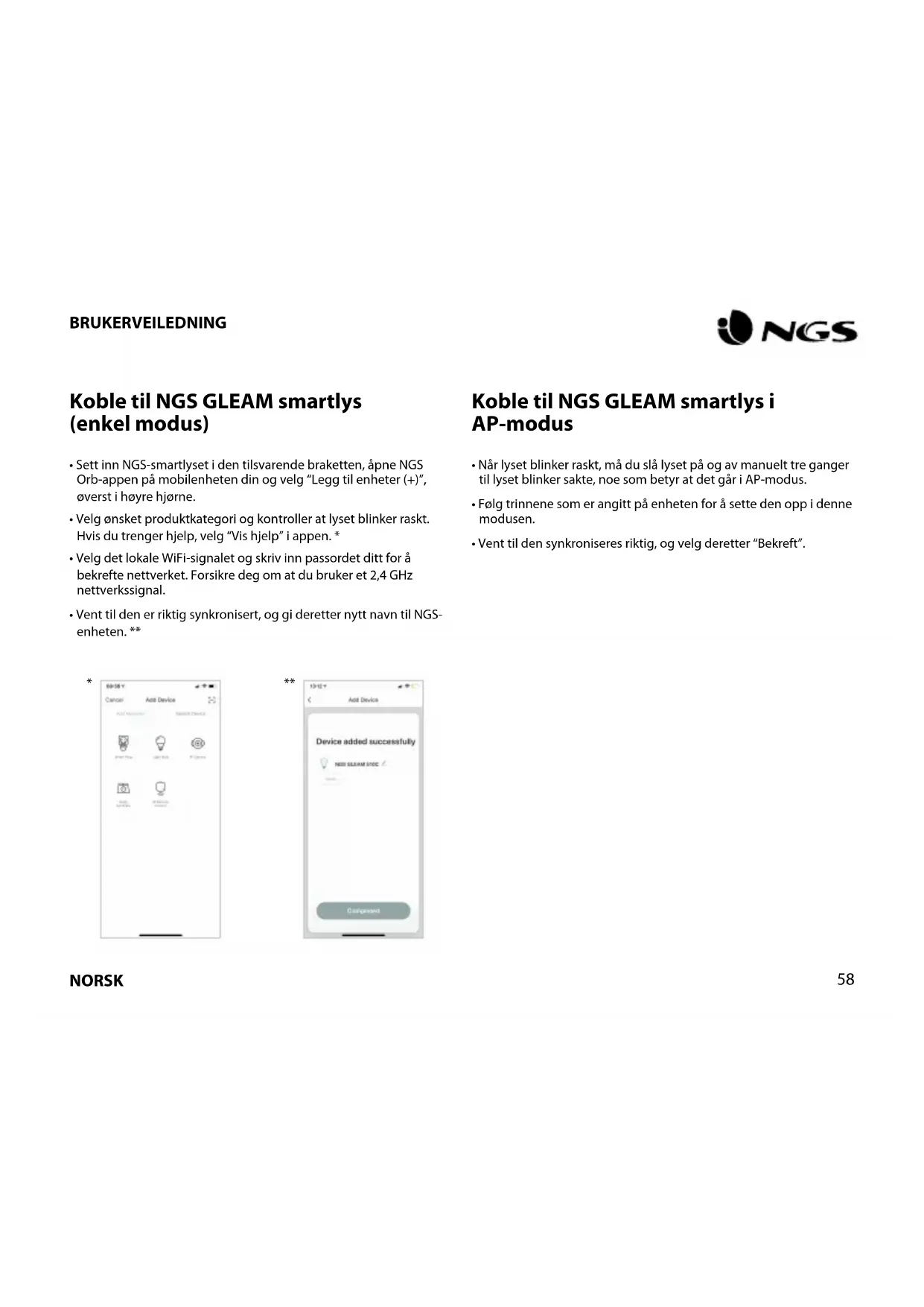 - Programmering Programmer av/på-funksjonen til NGS smartpære og gjenta så mange ganger du ønsker.NORSK BRUKERVEILEDNING