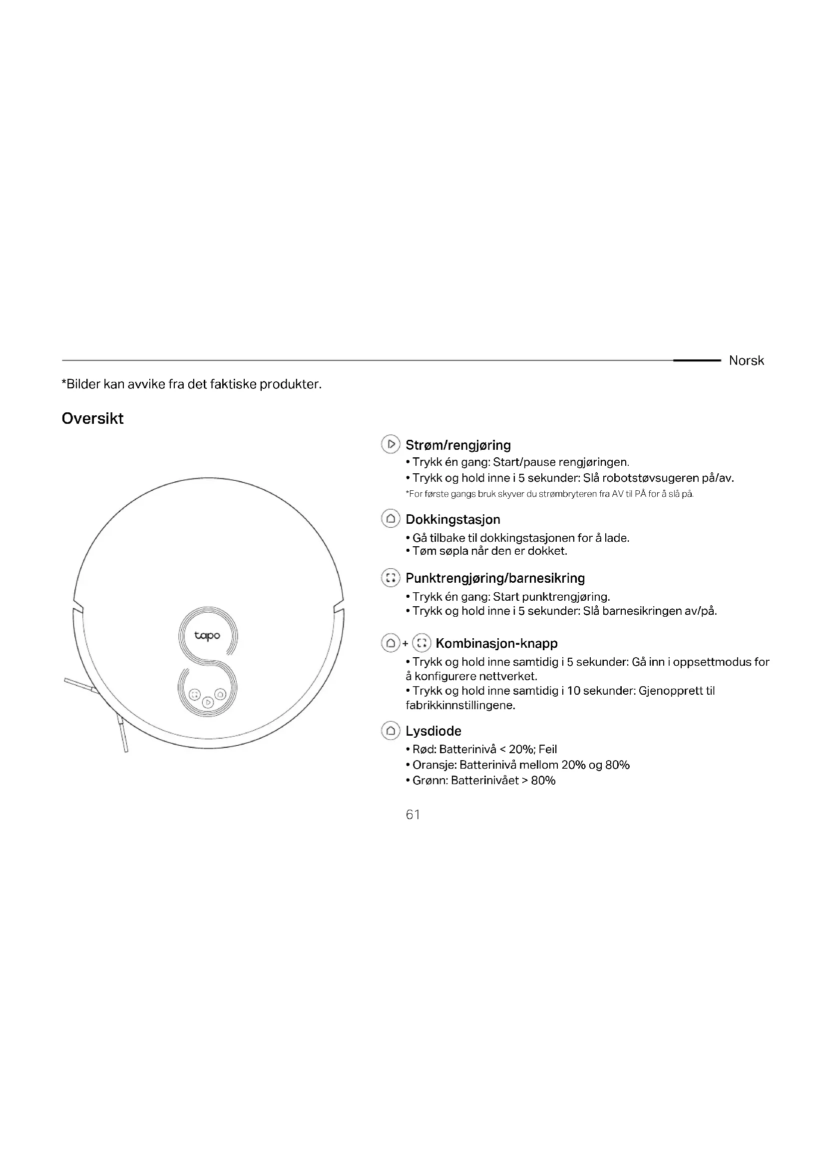 din. Følg de trinnvise instruksjonene for å enkelt sette opp robotstøvsugeren. Feilsøking & Talemeldinger for problemer: https://www.tp-link.com/support/faq/3525/