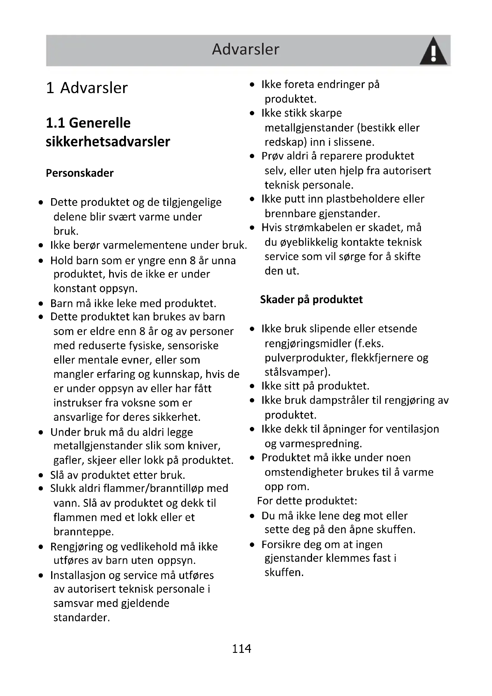 - Rengjøring og vedlikehold må ikke utføres av barn uten oppsyn.