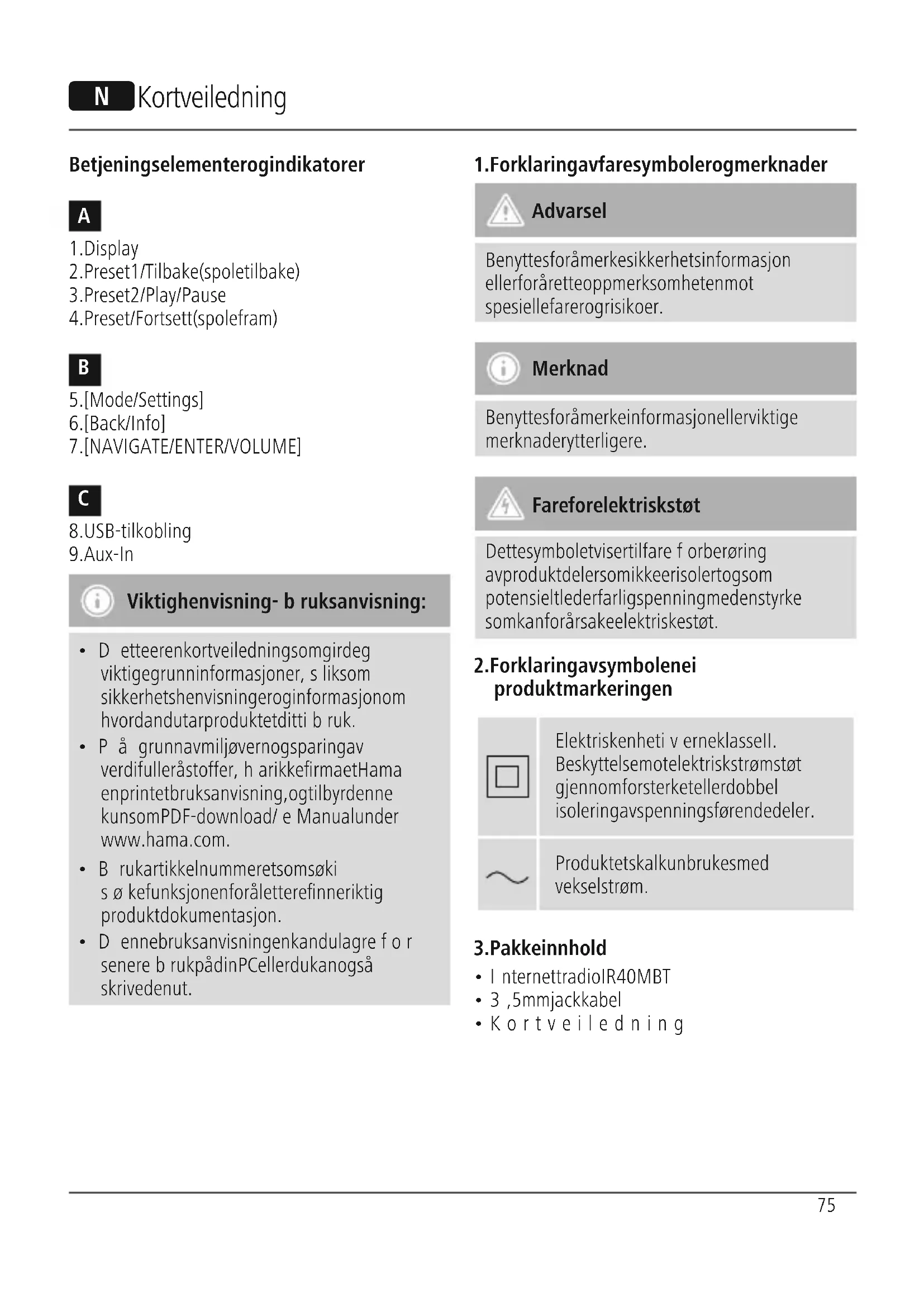 - Pågrunn av miljøvern og sparing av verdifulle råstoffer,har ikke rmaet Hama en printet bruksanvisning, og tilbyr denne kun som PDF-download /eManual under www.hama.com.