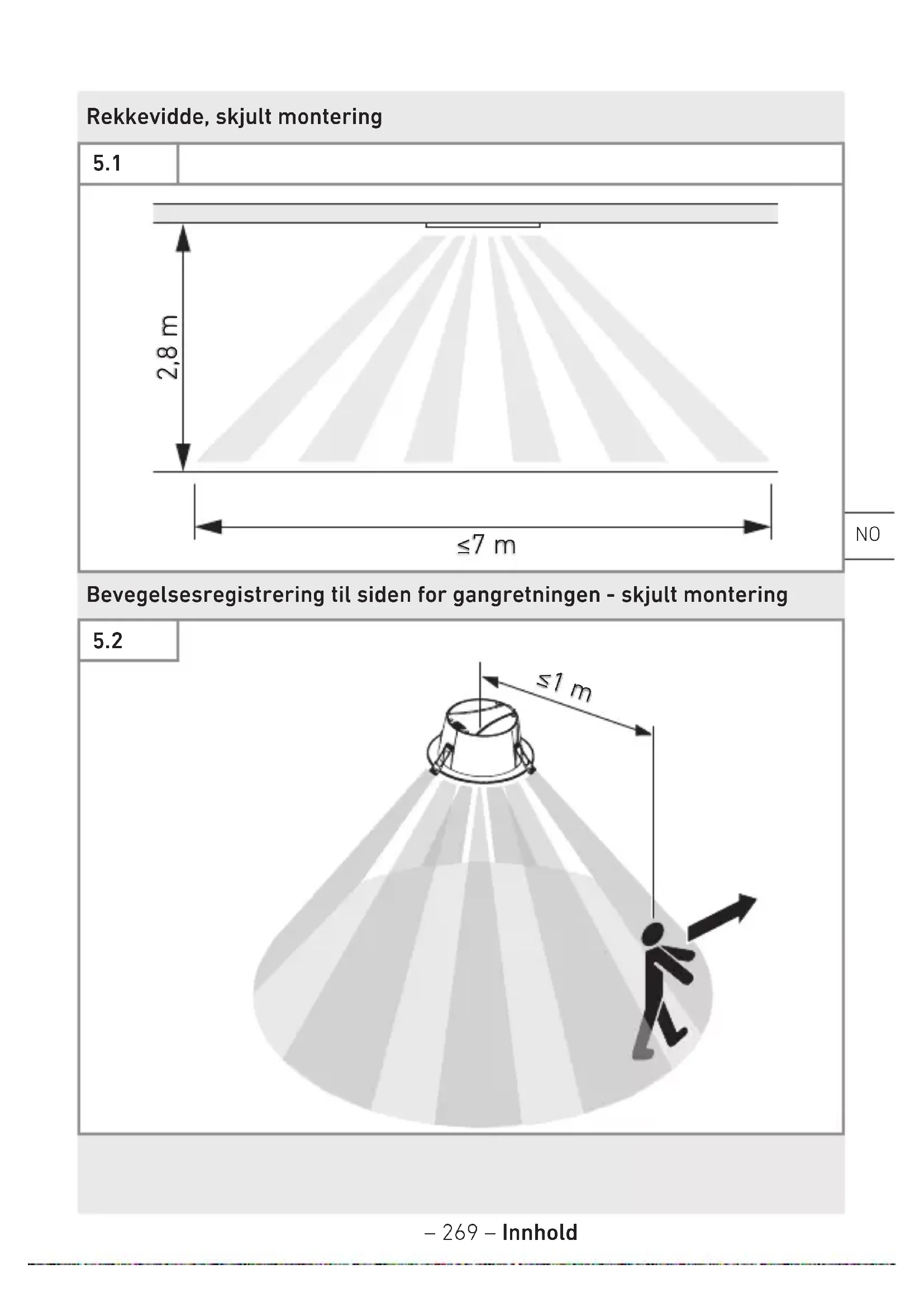 ≤1 m– 270 – Innhold Bevegelsesregistrering i gangretningen - skjult montering