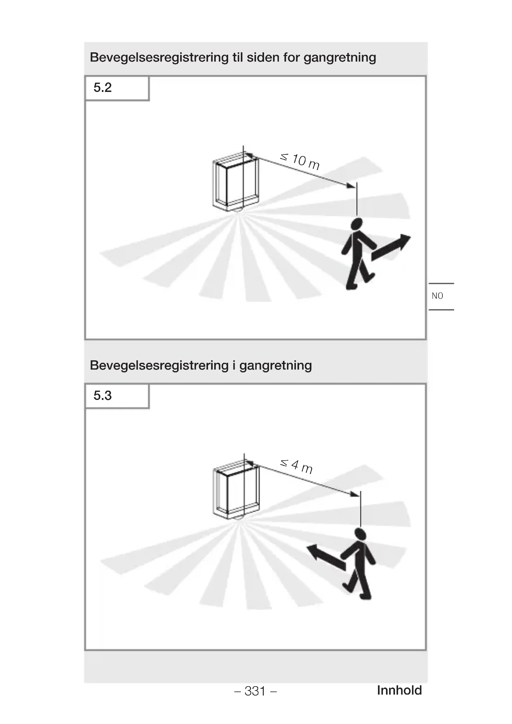 ≤10 m 2mNO – 331 – Innhold Bevegelsesregistrering til siden for gangretning