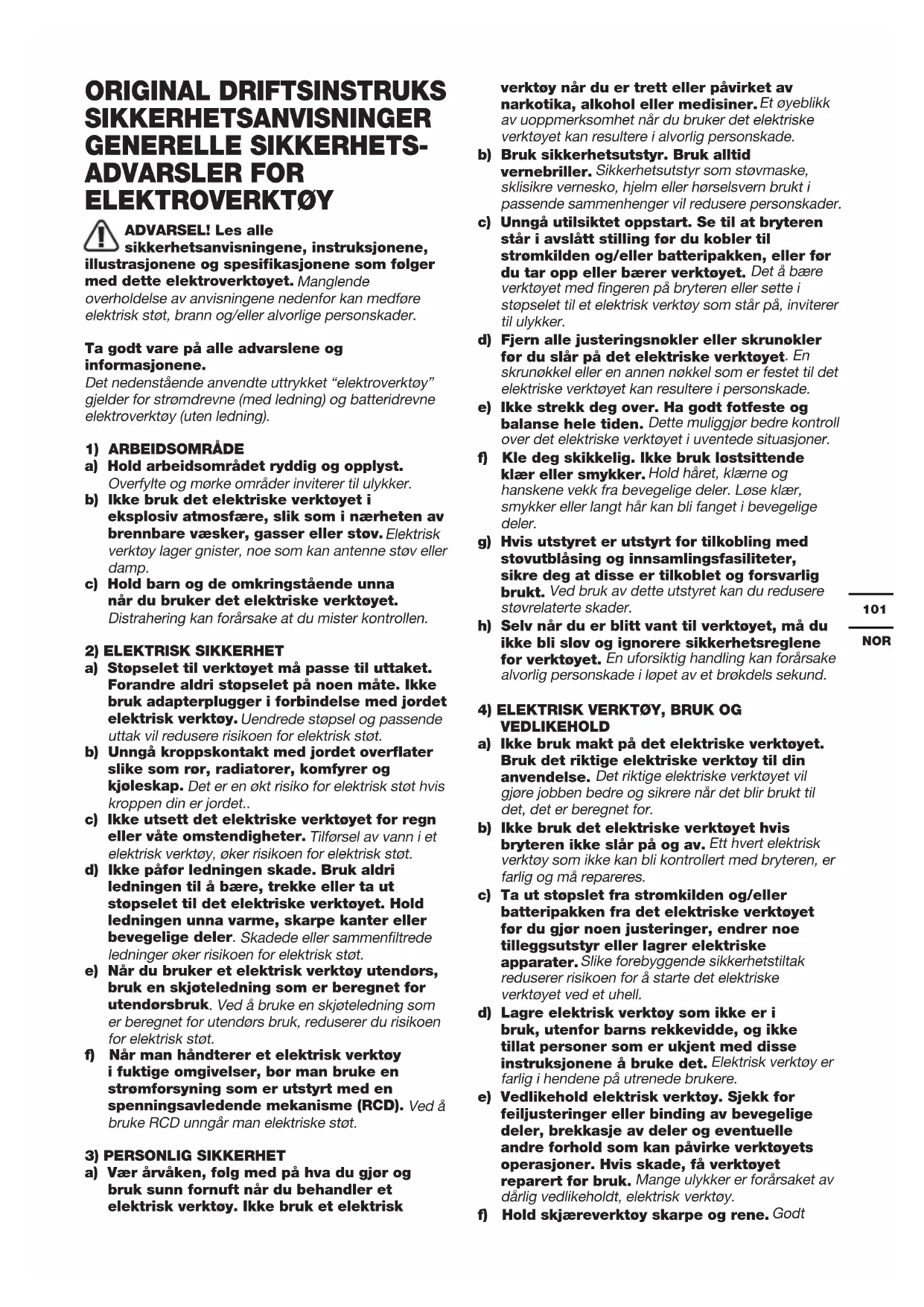 4) ELEKTRISK VERKTØY, BRUK OG