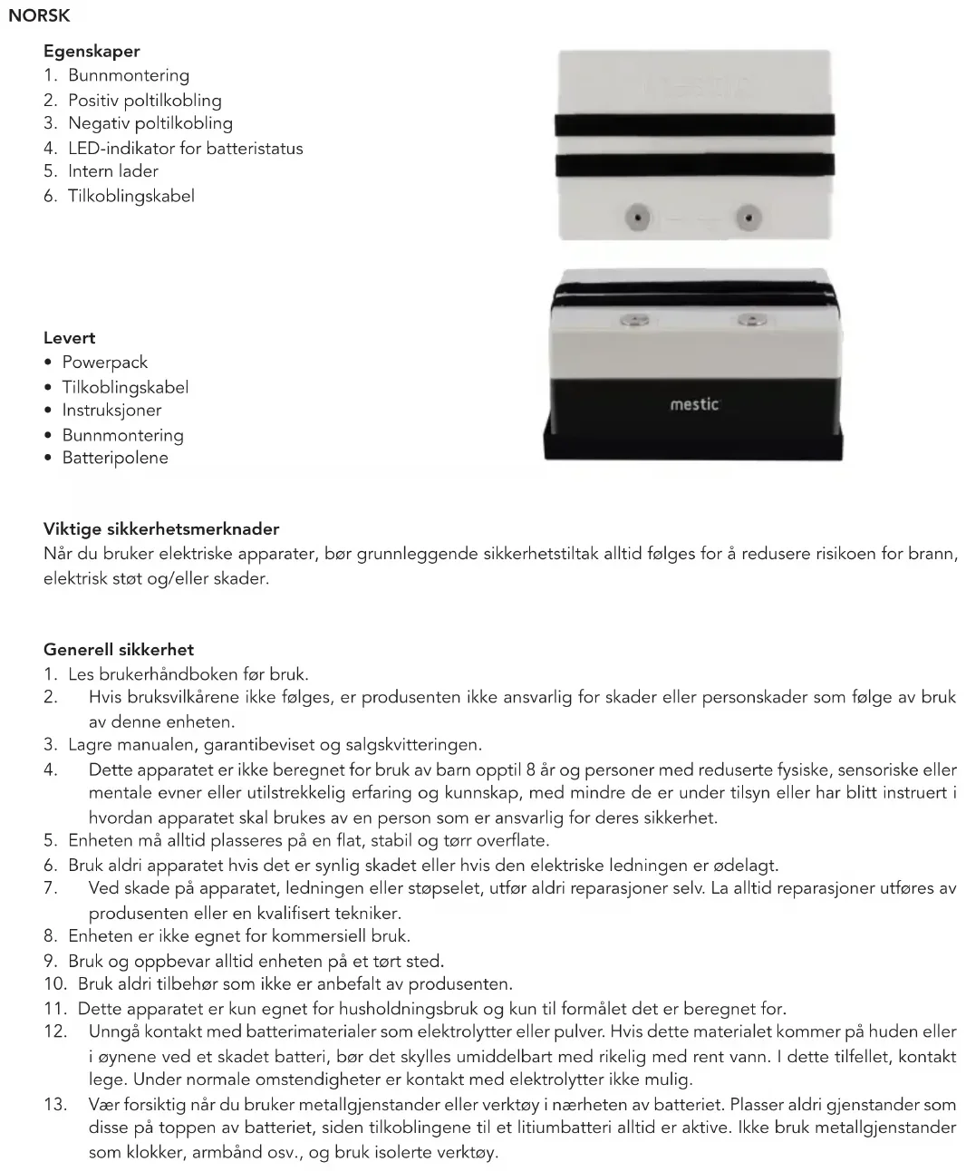 MPM-12 - Bærbar batteri Mestic - Gratis bruksanvisning og manual