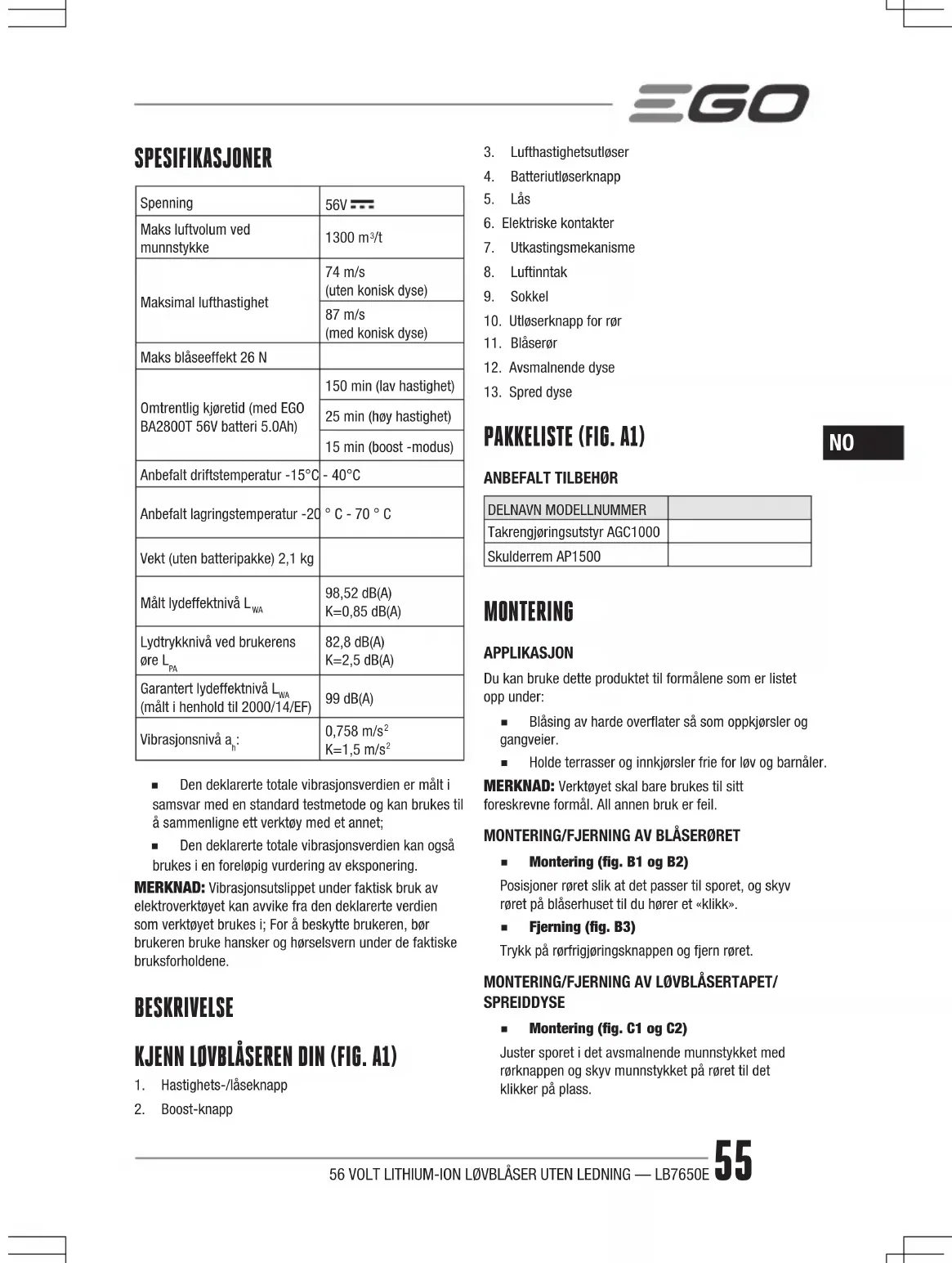 LB7650E - Blåser EGO - Gratis bruksanvisning og manual