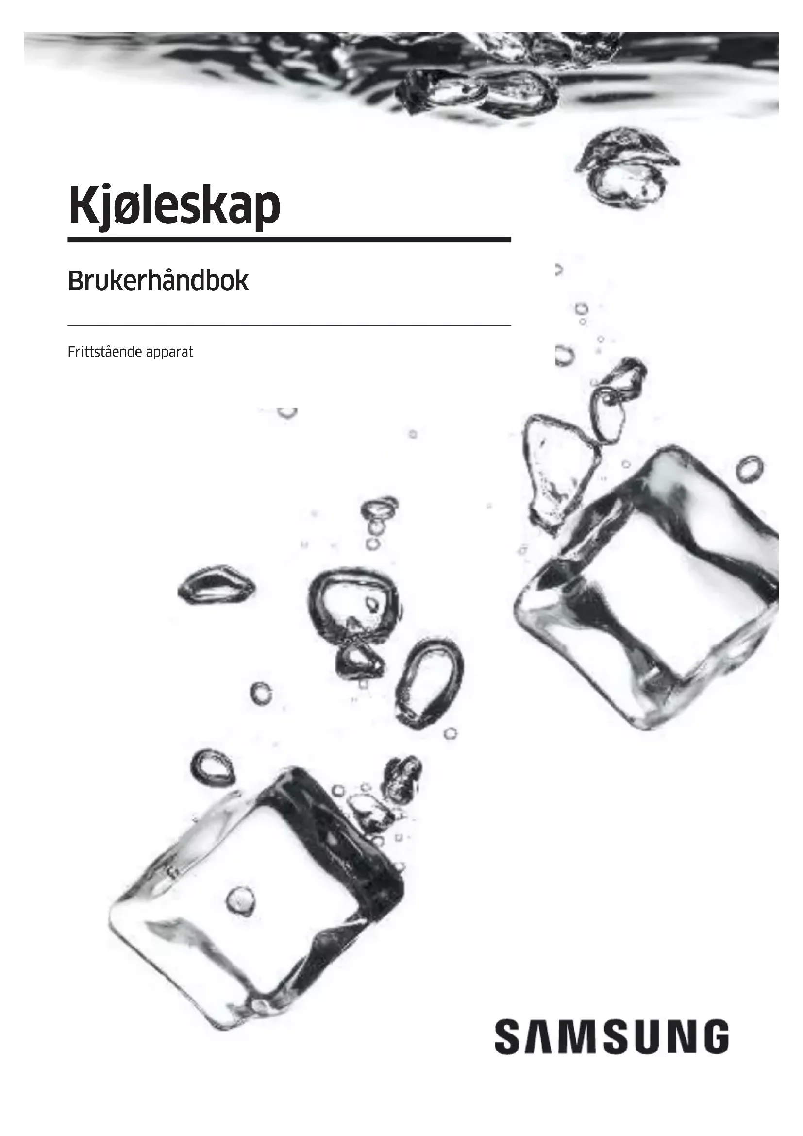 Chamada para a rede xa nacional Dias úteis das 9h às 20h www.samsung.com/pt/support SPAIN 91 175 00 15 www.samsung.com/es/support DA68-04756A-00Kjøleskap Brukerhåndbok Frittstående apparatNorsk2 Innhold Innhold Sikkerhetsinformasjon 4 Det du trenger å vite om sikkerhetsinstruksjoner 4 Viktige sikkerhetssymboler og forholdsregler: 6 Viktige sikkerhetsforholdsregler 7 Alvorlige varseltegn for transport og område 10 Kritiske installasjonsadvarsler 11 Forsiktighetsregler ved installasjon 15 Kritiske bruksadvarsler 15 Forsiktighetsregler ved bruk 20 Forsiktighetsregler ved rengjøring 23 Kritiske avhendingsadvarsler 25 Ekstra tips til riktig bruk 26 Instruksjoner om WEEE 27 Installasjon 28 Kort om kjøleskapet 28 Trinnvis installasjon 30 Drift 44 Hovedpanel 44 Stille inn ønsket temperatur eller funksjon 46 Endring av temperaturskalaen 47 Slå ismaskinen på eller av (bare aktuelle modeller) 47 Slå Wi-Fi på eller av 48 SmartThings 49 Spesialfunksjoner 52 Vedlikehold 55 Håndtering og behandling 55 Rengjøring 59 Utskiftning 60 Feilsøking 61 Generelt 61 Kommer det unormale lyder fra kjøleskapet? 64 SmartThings 66 Vedlegg 67 Sikkerhetsinstruks 67 Installeringsinstruks 67 Instruksjoner om temperatur 68 Informasjon om modellen og bestilling av ekstradeler 71Norsk 3 Innhold Open Source Announcement 72Norsk4 Sikkerhetsinformasjon Før du bruker det nye kjøleskapet fra Samsung, leser du denne håndboken nøye slik at du vet hvordan du bruker funksjonene som apparatet tilbyr på en trygg og effektiv måte. Det du trenger å vite om sikkerhetsinstruksjoner