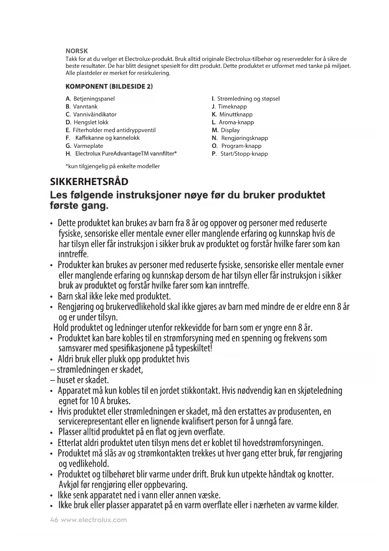 og kannelokket kan vaskes i oppvaskmaskin. Bruk aldri kaustiske eller slipende rengjøringsmidler, og senk aldri maskinen ned i væske!