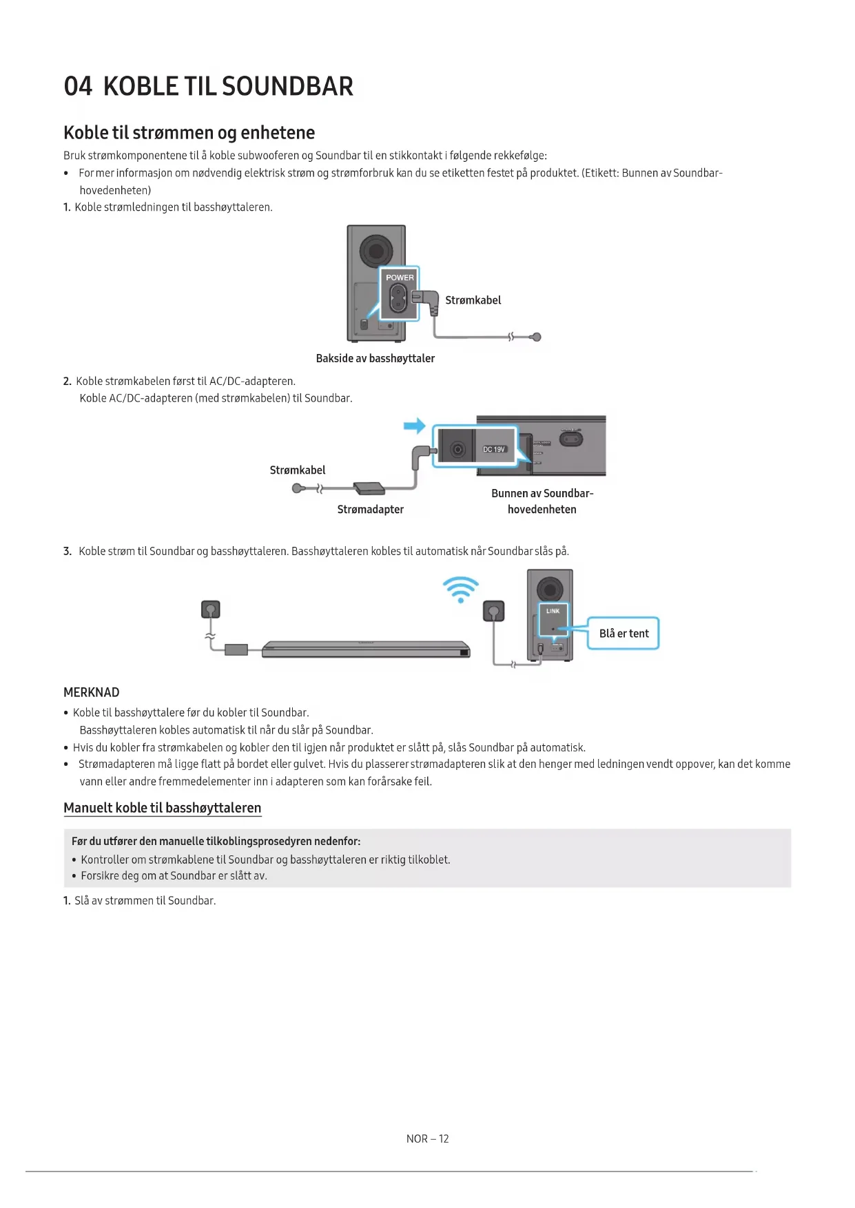 1. Slå av strømmen til Soundbar.NOR – 13