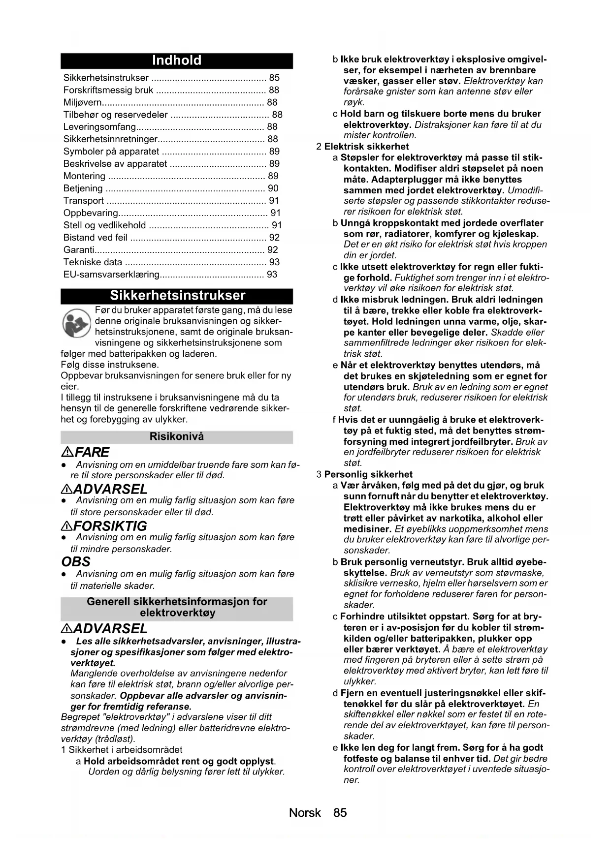 • Forskriftsmessig bruk p. 88