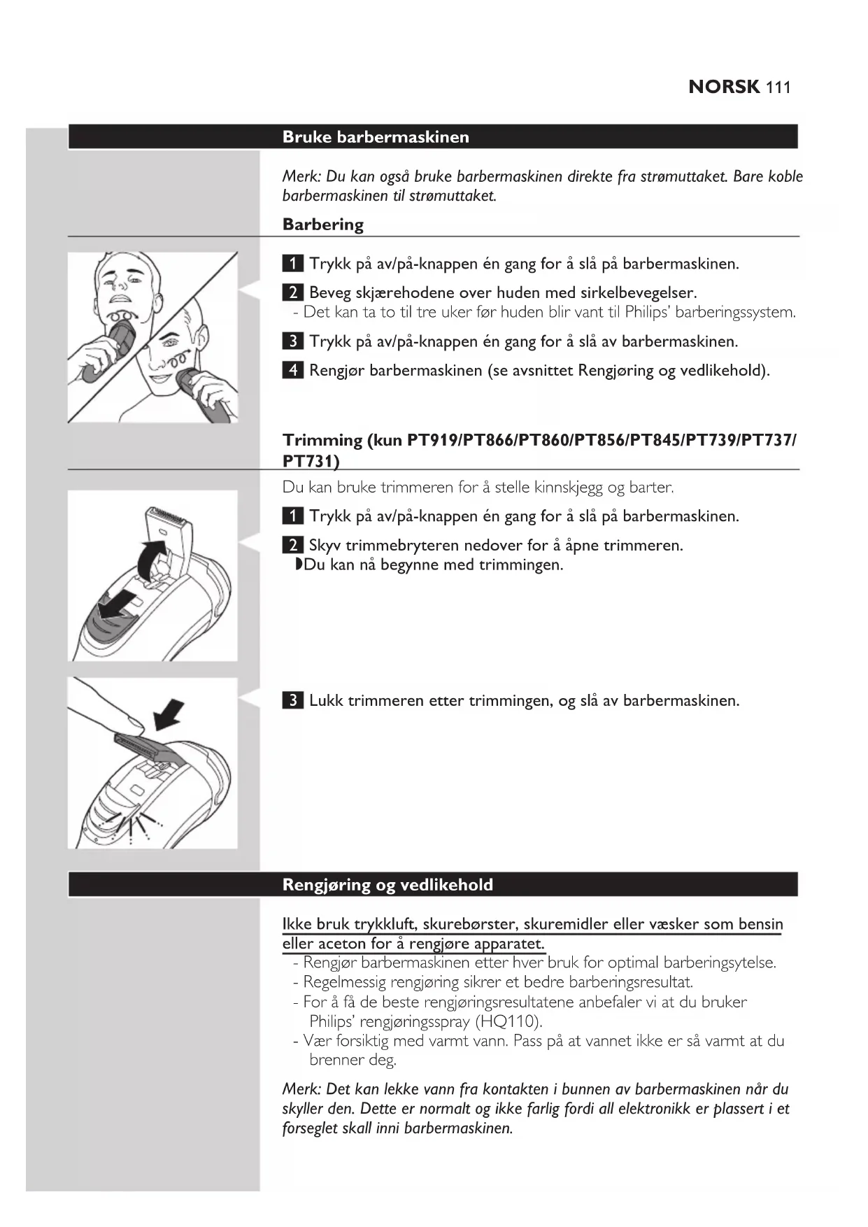 Last ned instruksjonene for din Barberhøvel i PDF-format gratis! Finn veiledningen din Series 5000 PowerTouch PT856 - PHILIPS og ta den elektroniske enheten tilbake i hendene. På denne siden er alle dokumenter som er nødvendige for bruken av enheten din publisert. Series 5000 PowerTouch PT856 av merket PHILIPS.