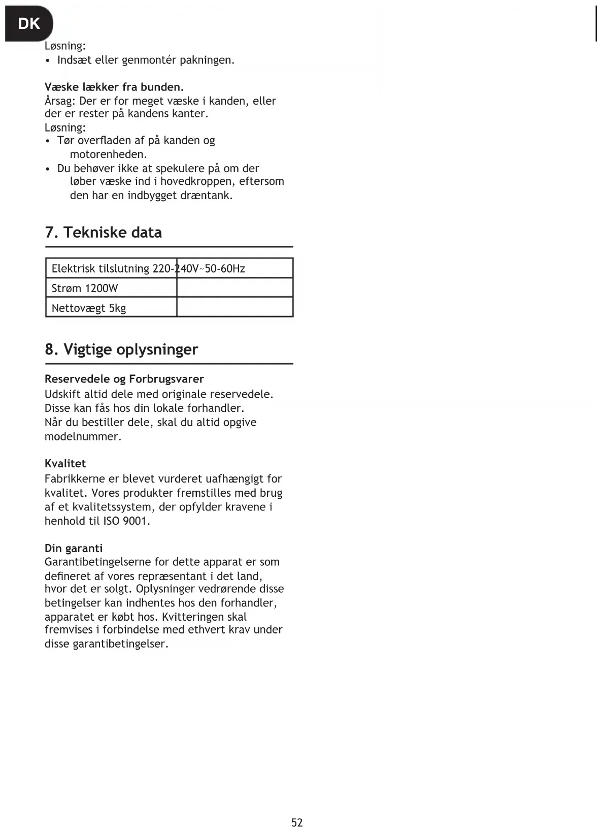 - 2-i-1 slikkepott og stamper Det anbefales å demontere alle delene etter indikasjonsskjemaet før vask i oppvaskmaskin. NO58 Reservedeler og forbruksvarer Bytt alltid ut deler med originale reservedeler. Disse er tilgjengelige hos din lokale forhandler. Når du bestiller deler, må du alltid oppgi modellnummeret ditt. Kvalitet Fabrikker er uavhengig vurdert for kvalitet. Våre produkter produseres ved å bruke et kvalitetssystem som er i samsvar med ISO 9001. DIN GARANTI Garantibetingelsene for dette apparatet er som denert av vår representant i det landet der det ble solgt. Detaljer vedrørende disse betingelsene fås fra forhandleren der apparatet ble kjøpt. Salgskvitteringen må fremvises ved fremsetting av krav under betingelsene i denne garantien. Elektrisk tilkobling 220-240V~50-60Hz Strøm 1200W Netto vekt 5kg