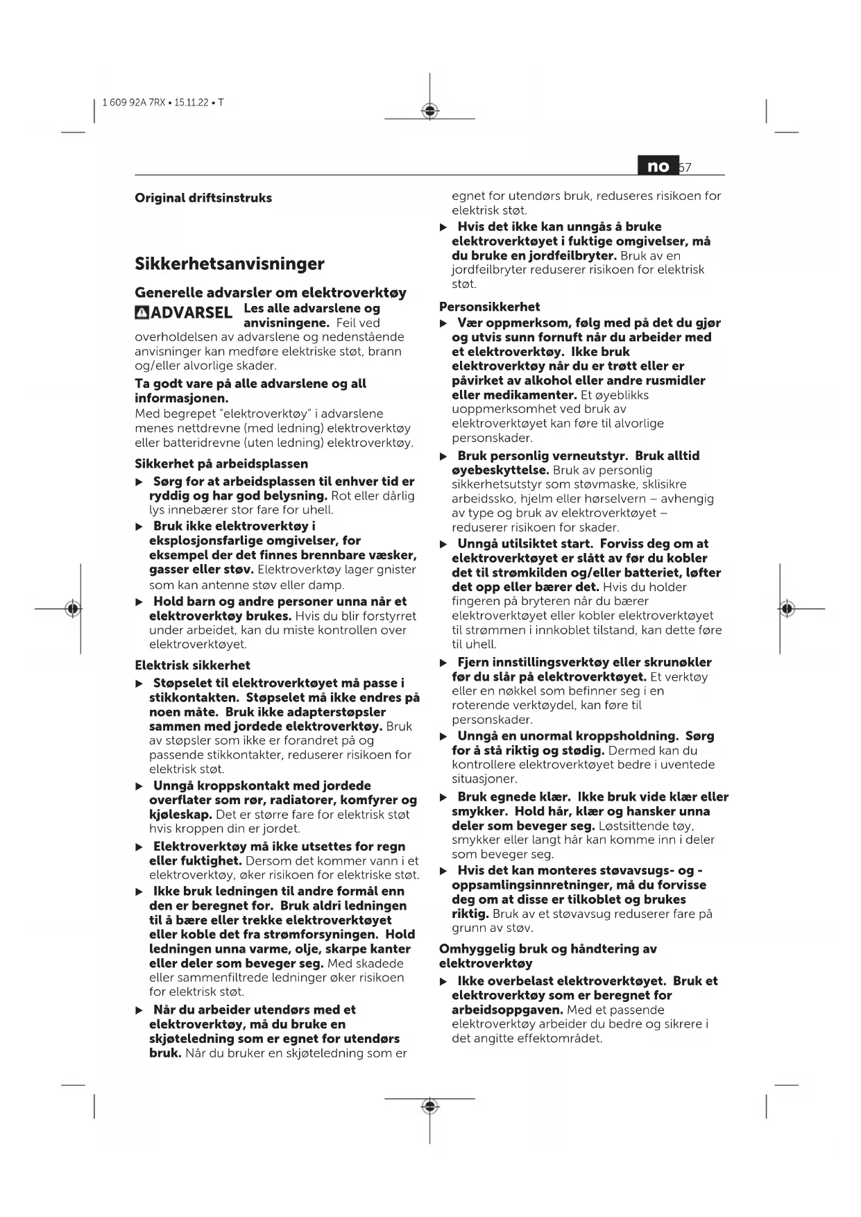 og ved lagring °C –20…+50 Anbefalte batterier GBA 18V… ProCORE18V… Anbefalte ladere GAL18… A) Målt ved20−25°Cmed batteriProCORE18V 8.0Ah. B) Avhengig av batteriet C) Begrenset ytelse ved temperatur under 0°C Støy-/vibrasjonsinformasjonNorsk Støyemisjon målt i henhold tilEN60745‑2‑20. Vanlig A-lydtrykknivå for elektroverktøyet er79dB(A). Usikkerhet K=3dB. Støynivået kan overskride de angitte verdiene under arbeidet. Bruk hørselvern! Vibrasjon totalt a