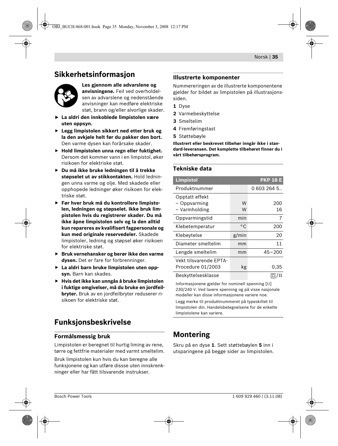 PKP 18 E - REV 11-2008 - Pistolet à colle BOSCH - Notice d'utilisation et mode d'emploi gratuit