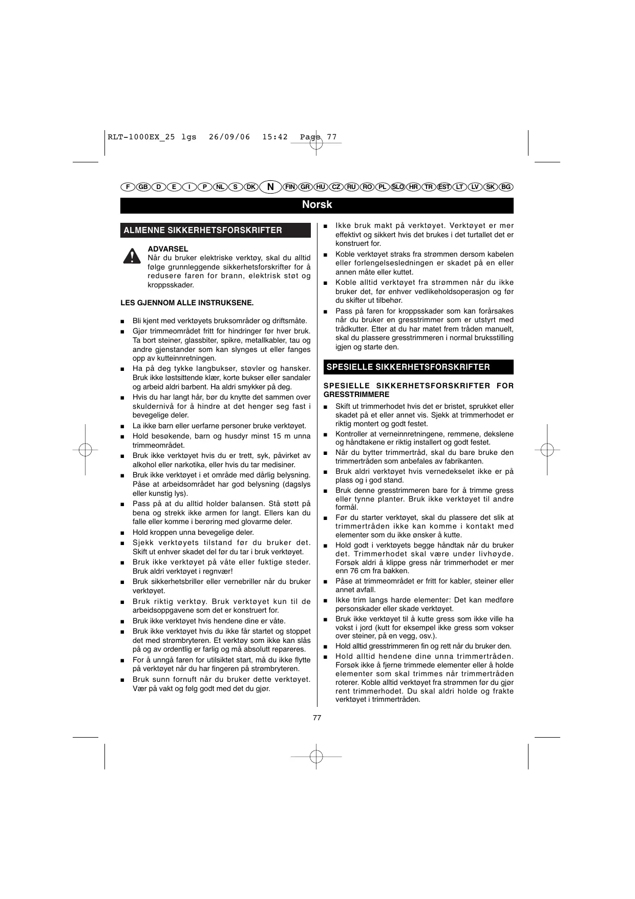 CONSIGNES DE SÉCURITÉ SPÉCIFIQUES CONSIGNES DE SÉCURITÉ SPÉCIFIQUES AUX COUPE-BORDURES