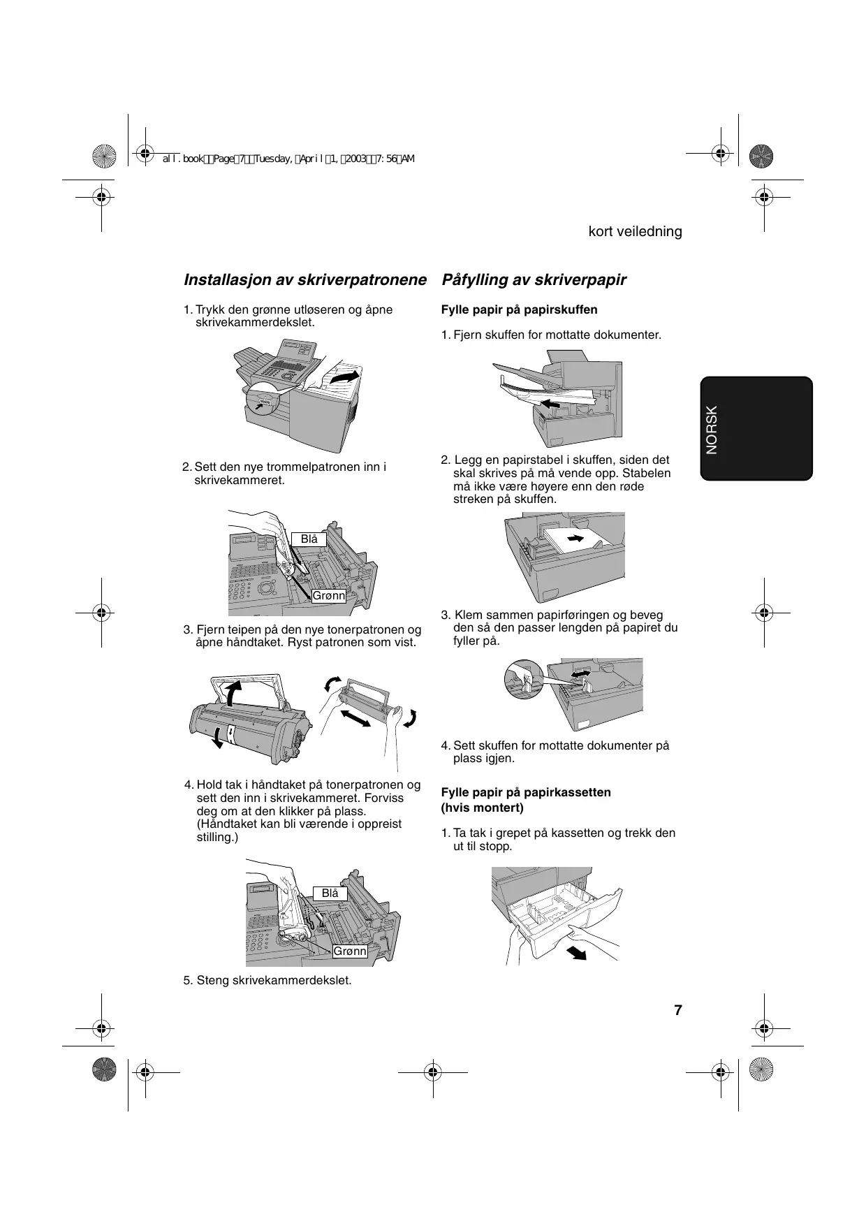 kort veiledning Installasjon av skriverpatronene Päfylling av skriverpapir